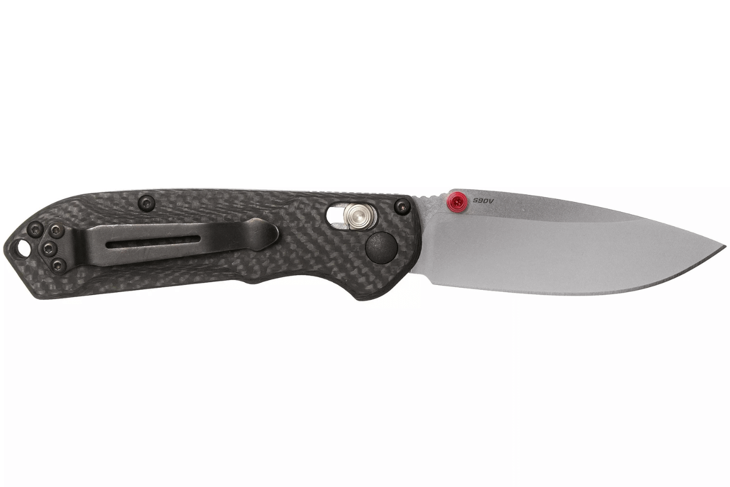 Le Benchmade Mini Freek 565 1 se munit d'une lame en acier inoxydable CPM-S90V. Ce matériau issu de l'industrie de la course et de l'aviation fait partie de l'un des meilleurs aciers au monde. Il est solide et pourtant très léger.