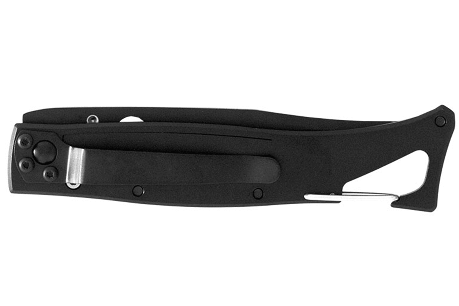 Clip de poche noir et mousqueton sur le manche