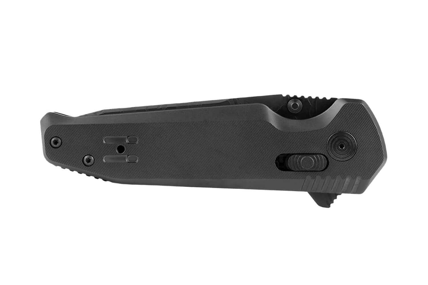 Vous pouvez déployer cette lame grâce à un bouton de pouce. Cet ergot est aussi appelé Thumbstud. Cependant, vous pouvez libérer la lame avec un flipper qui dépasse du manche. Une fois ouverte, la lame est maintenue en position de travail par un mécanisme XR Lock. Ce système empêche une fermeture intempestive de la lame lorsque vous l'utilisez.