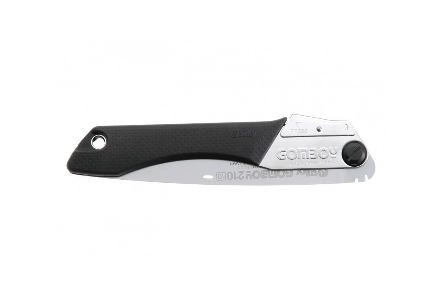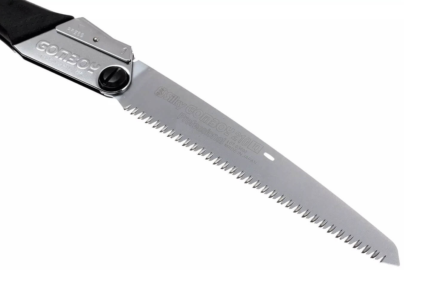 On peut facilement bloquer la lame sur deux positions de sciage pour plus de sécurité. Une fois la scie repliée, les dents rentrent complètement dans la poignée.