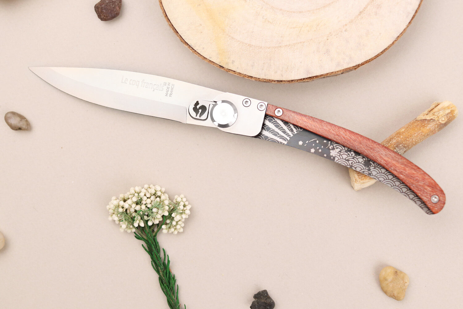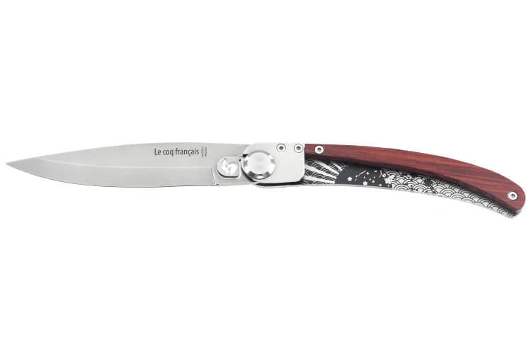 Couteau pliant Le Coq Français Tokyo Red Heart artisanal manche bois rouge..