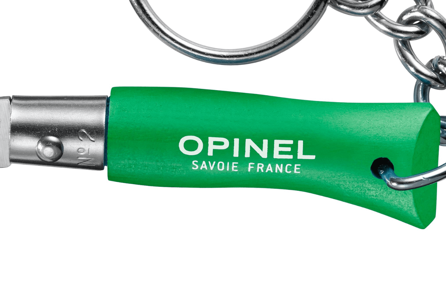Le manche du couteau de poche Opinel Colorama n°2 est en bois de charme. Provenant d'exploitations françaises, ce bois est très prisé pour sa durabilité et sa facilité de travail. En outre, il est aussi parfait pour être teint de par le fait qu'il a peu de veinages. Revêtu d'une couleur vert prairie, ce couteau se distingue aisément au milieu de vos effets personnels. À son extrémité, le manche est orné d'un pratique mini anneau de porte-clés, offrant la commodité de le fixer facilement à votre trousseau.