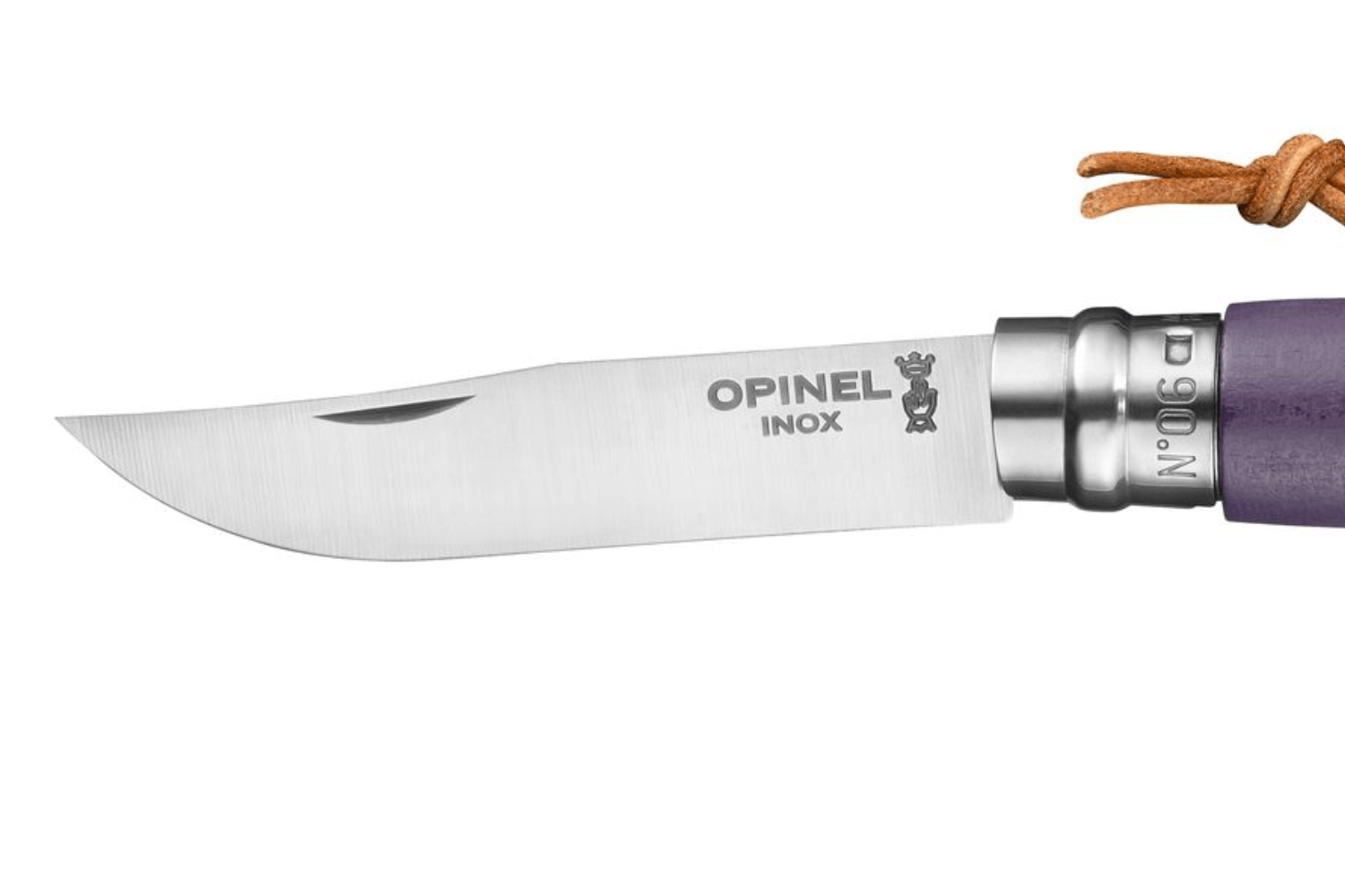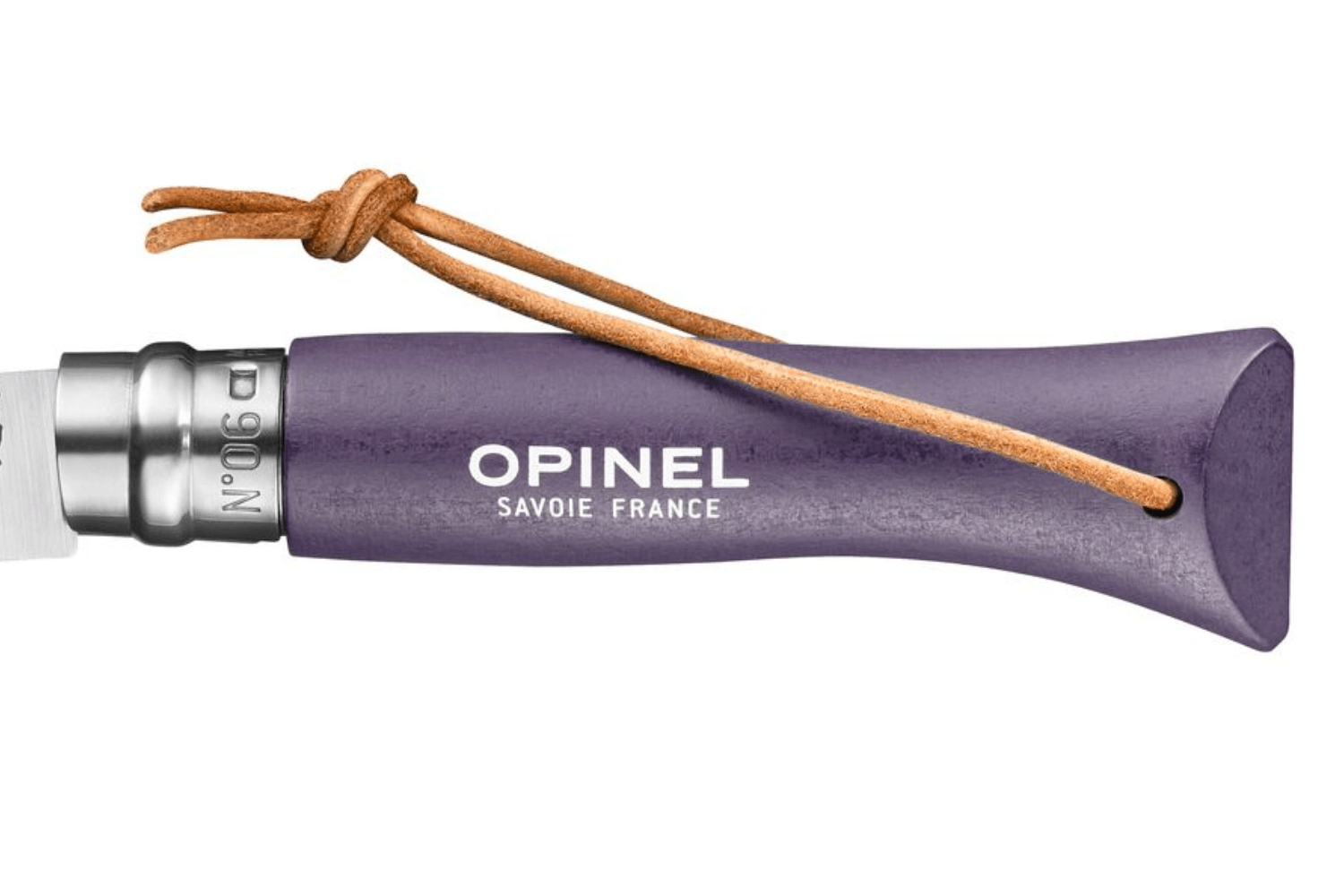 Mesurant 9cm, le manche du couteau pliant n°06 Baroudeur est conçu en bois de charme issu d'exploitations françaises. Doté de très peu de veinages, ce bois blanc est idéal pour des finitions colorées, et met en valeur la teinte violet gris sans altérer l'aspect du bois. Par ailleurs, cette poignée est enduite de vernis pour une protection accrue contre l'humidité et les salissures. Enfin, une lanière en cuir à son extrémité ajoute une touche pratique, permettant de suspendre votre couteau où bon vous semble.