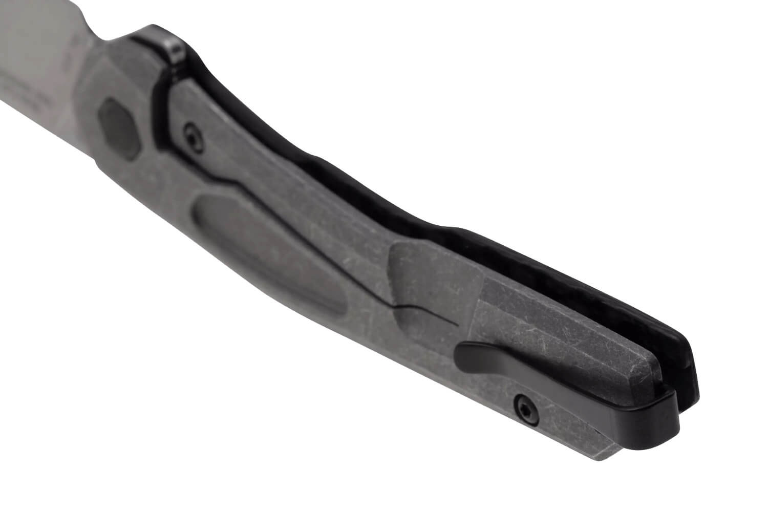 Côté manche, celui-ci est fabriqué à partir de 2 matériaux : le recto est en fibre de carbone tandis que le verso est en titane. Tous des matériaux de première qualité pour ne vous offrir que le meilleur ! Grâce à ce combo, le couteau est confortable à utiliser et la prise en main est équilibrée. Le manche est légèrement incurvé pour s'adapter à la forme de la main.
