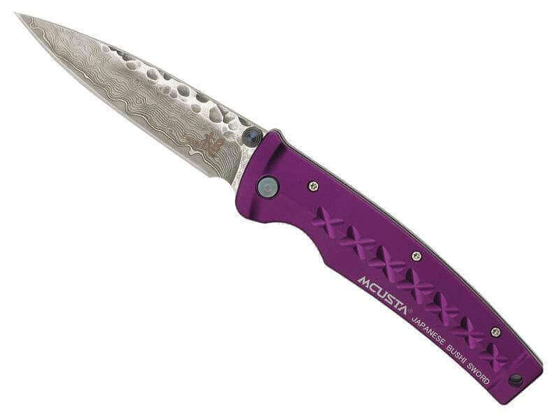 Le manche en aluminium anodisé violet est décoré de plusieurs croix. Lorsque le couteau est fermé, seul le haut de la lame martelé est visible, le design est proche de la perfection. Un clip est présent au dos du manche vous permettant de le clipper sur un support ou à votre ceinture par exemple* !