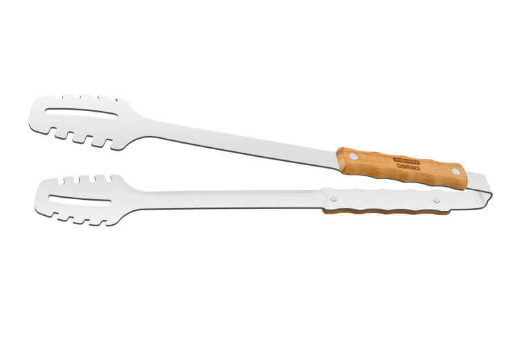 Cette pince est fabriquée en acier inoxydable, un alliage reconnu pour sa résistance à la corrosion et sa longue durée de vie. Le long manche est spécialement conçu afin de protéger les mains des flammes du barbecue. Il est fait en bois dur brésilien ou en bois de cerisier brésilien. Ces matériaux restent froids au toucher même sous une chaleur intense. Il est important de noter que le bois utilisé par Tramontina pour les poignées de ses couteaux est certifié FSC®. Cette certification confirme qu'il est issu d'une exploitation forestière contrôlée pour une démarche écoresponsable.