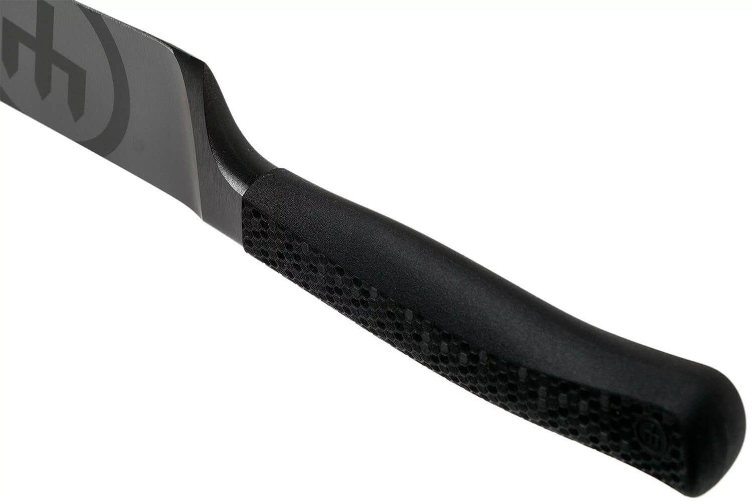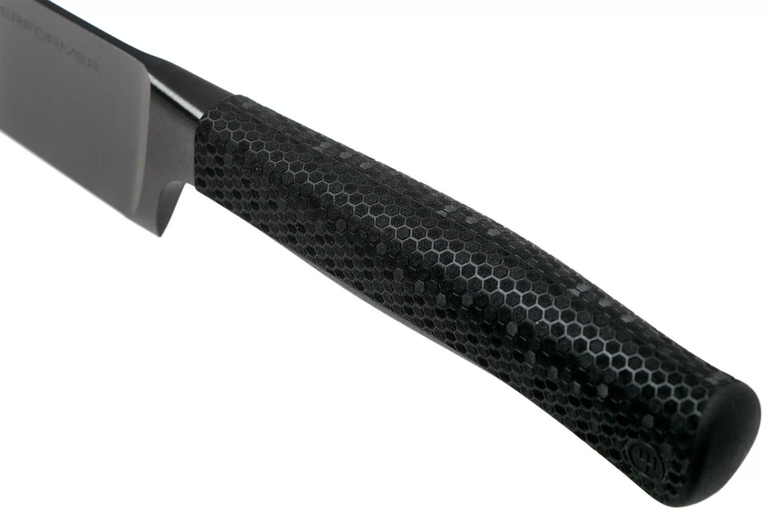 La surface du manche est aussi texturée tel un nid d'abeille. Ceci vous assure une excellente prise en main en toute sécurité car le couteau ne glisse pas, même si vous avez les mains mouillées. Performance et sécurité sont les maîtres-mots.