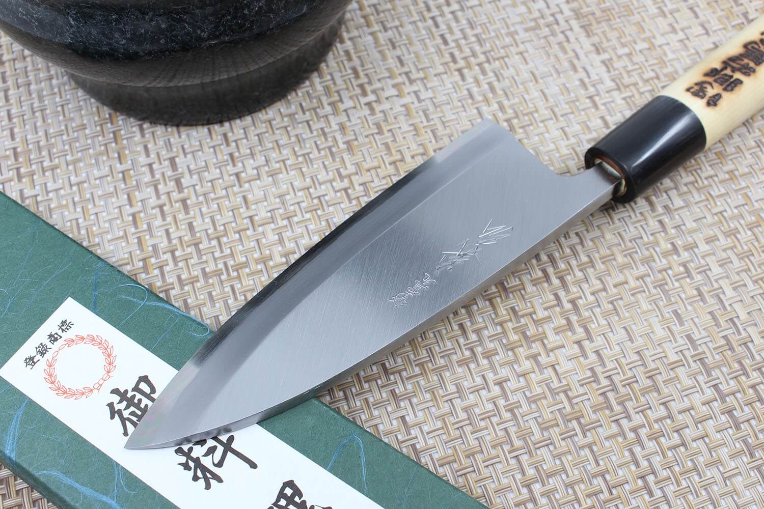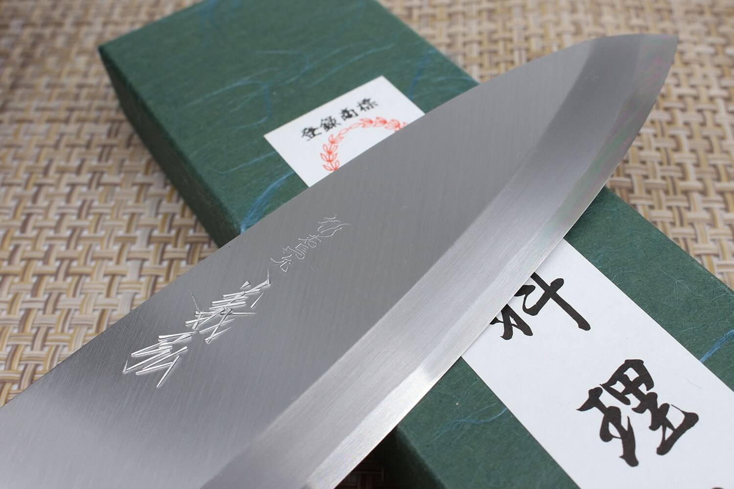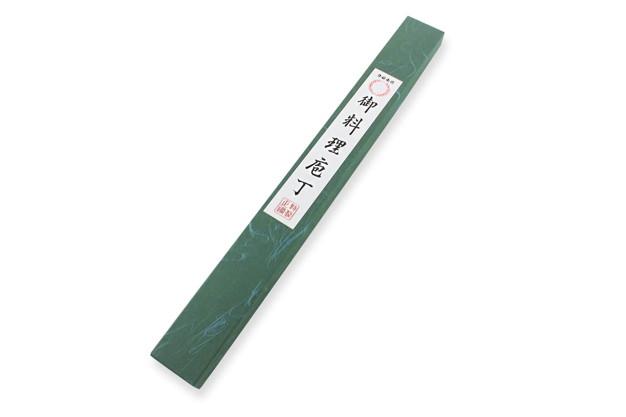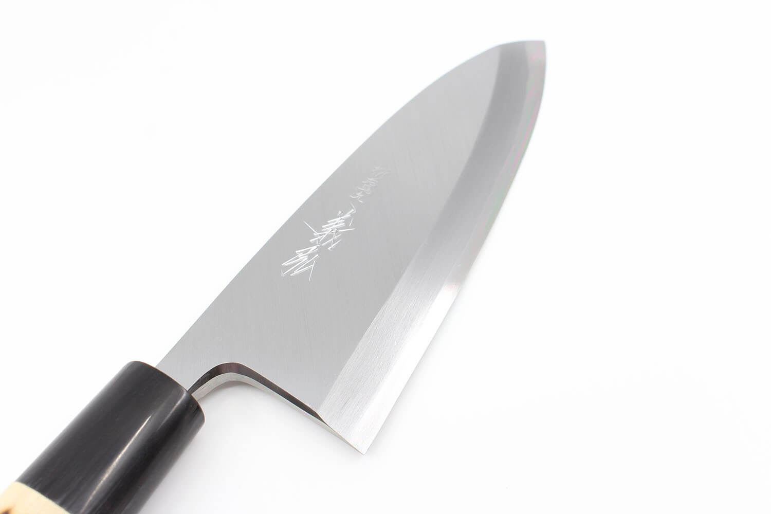 Ce taux permet de rendre l'acier plus rigide, ce qui permet ensuite de l'aiguiser de façon plus intensive. Du coup, le tranchant est ultra performant, pour des découpes nettes et précises à chaque utilisation. Une couche supplémentaire en fer doux vient entourer le cœur mentionné ci-dessus. Le logo visible sur la lame a directement été gravé au poinçon par un artisan expert. C'est le cas pour chaque couteau Yoshihiro !