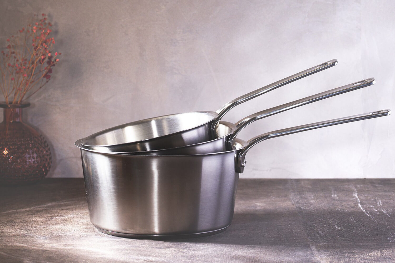 Le set inclut trois casseroles de tailles complémentaires pour répondre à tous les besoins :