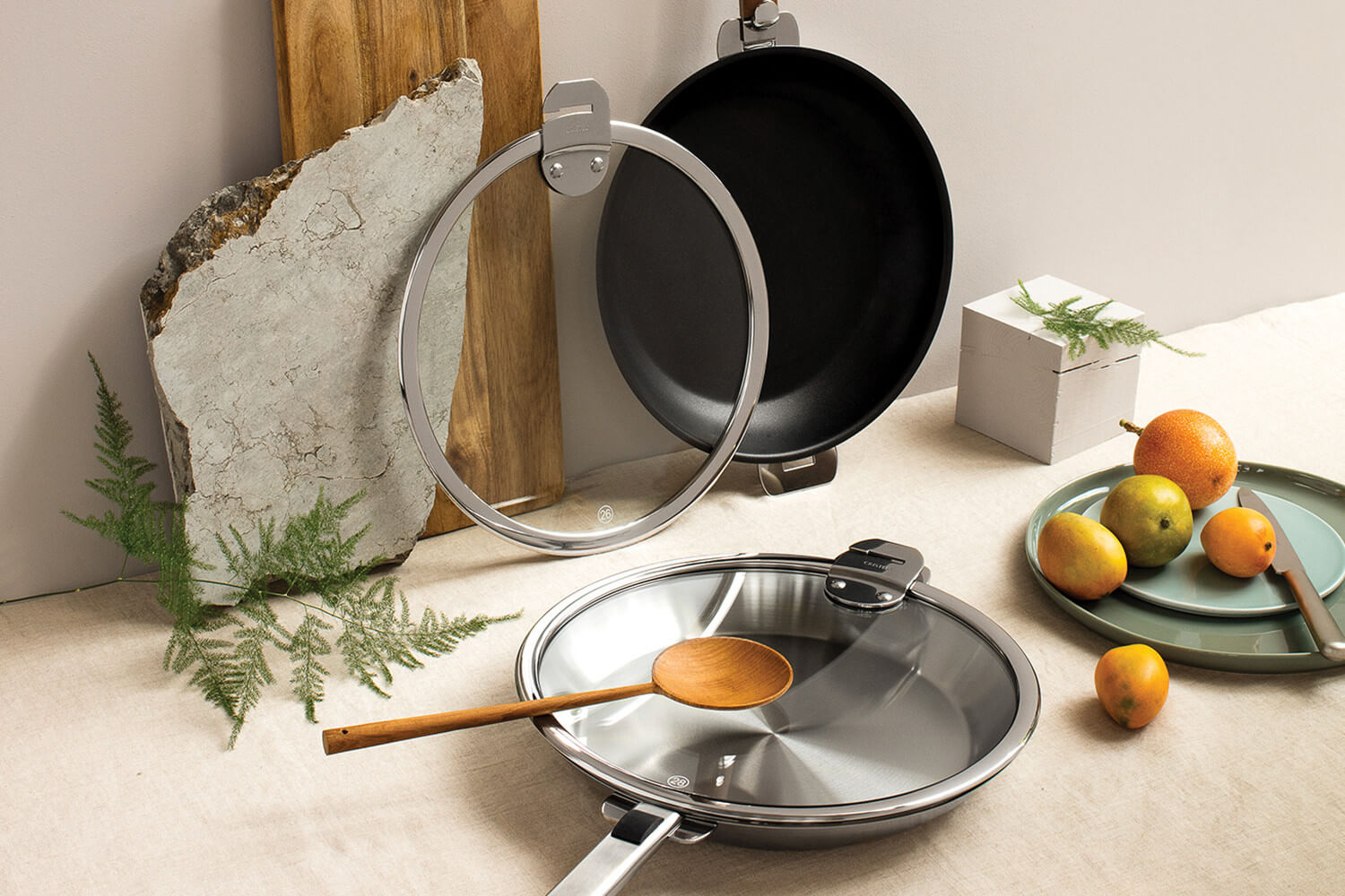 Grâce à sa forme extra plate, le couvercle ne prend pas de place dans vos placards et assure un rangement compact.