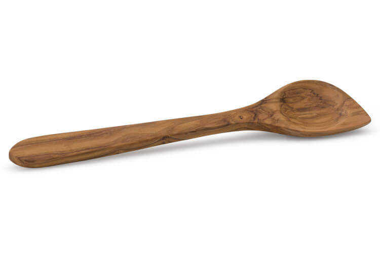 Cette cuillère est fabriquée en bois d'olivier connue et appréciée pour sa robustesse. Il dispose d'un côté unique car son veinage est irrégulier et diffère selon le morceau de bois utilisé. La cuillère a été huilée afin d'imprégner le bois d'une protection supplémentaire contre les fissures et l'usure en général.