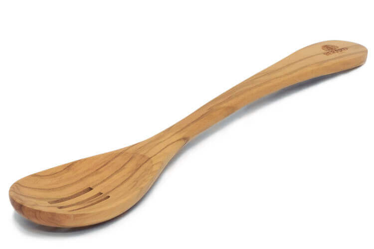 La cuillère à poisson ajourée Bérard est ainsi faite en olivier aux fibres serrées. Elle vous permettra entre autres de mélanger de façon homogène vos ragoûts, poissons et soupes… Le travail du bois de la marque témoigne d'un savoir-faire séculaire adapté à une cuisine saine et authentique. La forte densité de l'olivier l'empêche d'absorber l'odeur des aliments. Ce bois est particulièrement durable et ne raye pas vos récipients.