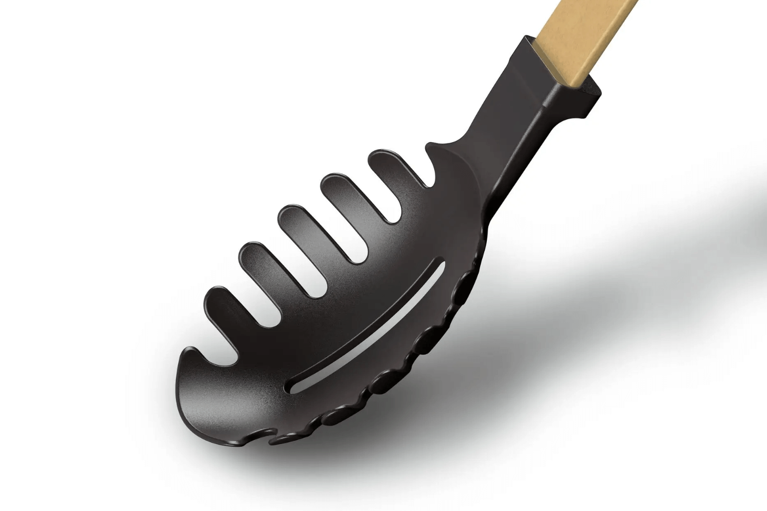 La tête en nylon promet une durabilité exceptionnelle, garantissant que cet outil restera un élément de confiance dans votre cuisine pendant de nombreuses années. Cette matière en nylon résiste parfaitement à une température élevée allant jusqu'à 260°C. Cette résistance vous permet de manipuler divers plats chauds sans risquer d'abîmer l'outil. En outre, son bord dentelé facilite le service de portions généreuses de spaghettis sans dégâts, évitant les glissements habituels et facilitant le service des pâtes. De plus, le manche confortable, fabriqué en composite de papier robuste, assure une prise en main agréable.