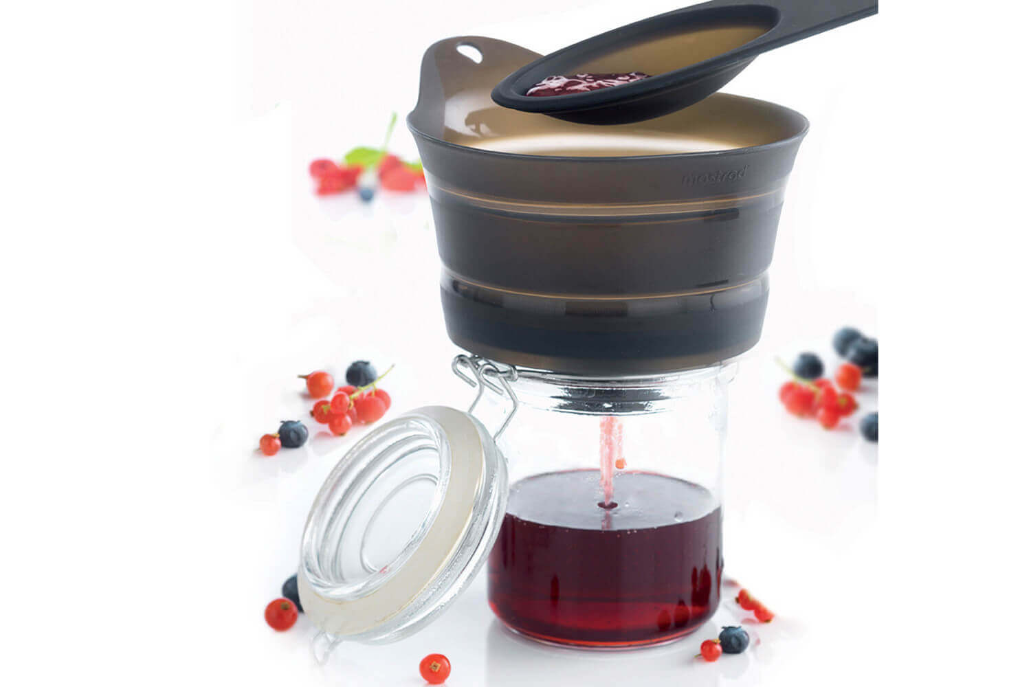Filtre efficacement vos confitures grâce à l'entonnoir filtrant et pliable Mastrad !