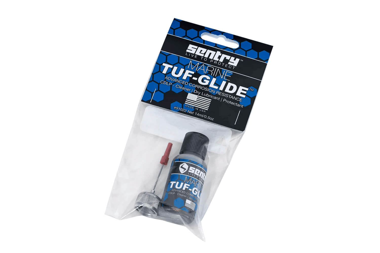SENTRY Solutions est une entreprise américaine spécialisée dans la fabrication de produits de maintenance, de lubrifiants pour couteaux, d'outils de pêche et autres équipements. Le lubrifiant/inhibiteur de rouille Marine Tuf-Glide est l'un de leurs produits phares.