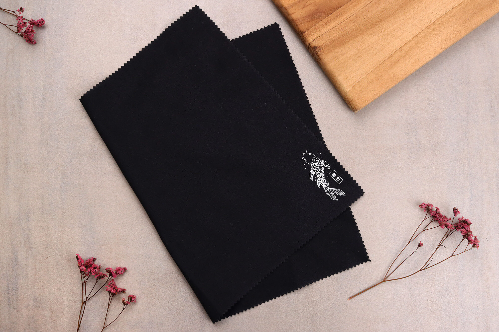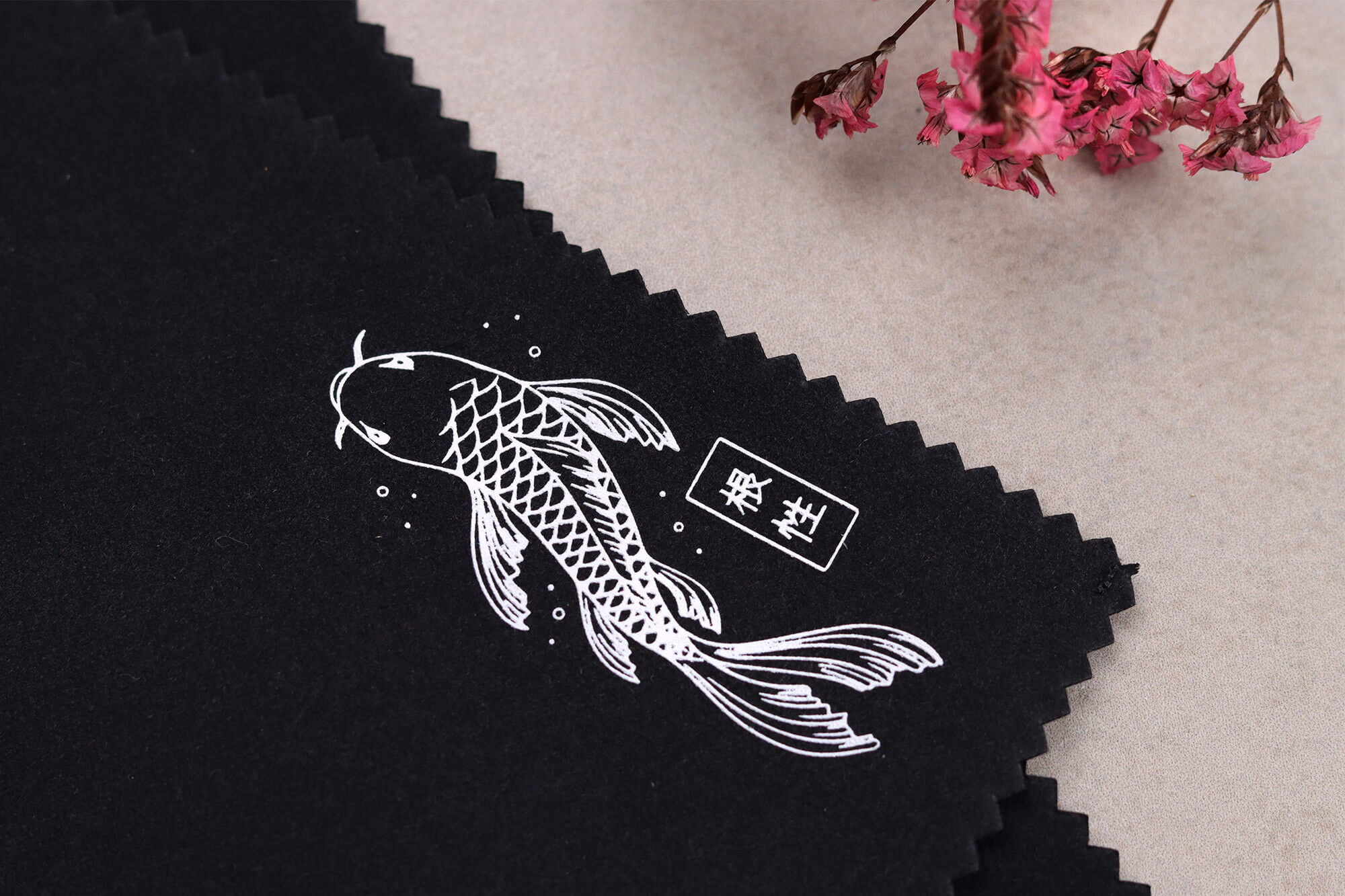 Coloris noir - Motif Carpe Koï qui vient habiller sa surface, tout en contraste