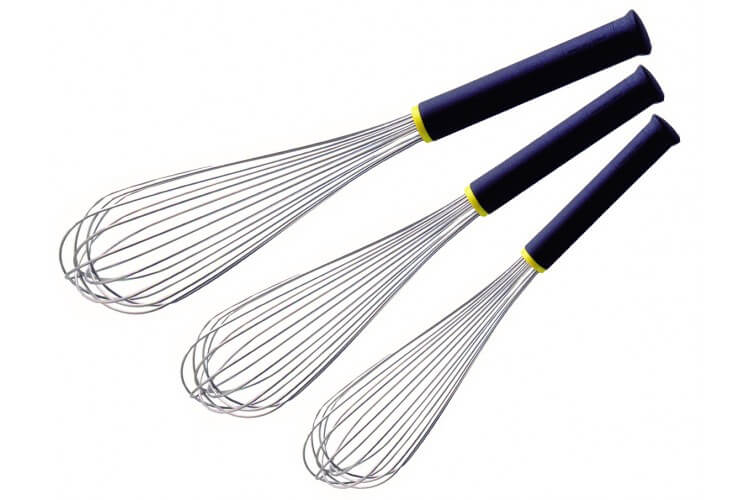 Ce kit est composé de trois fouets de différentes tailles, à savoir, 30, 35 et 40cm, pratique selon la quantité de préparations à cuisiner. Chaque fouet possède des fils en acier inoxydable ressort. Ainsi, la pomme conservera sa forme originelle même en cas d'utilisation intensive.