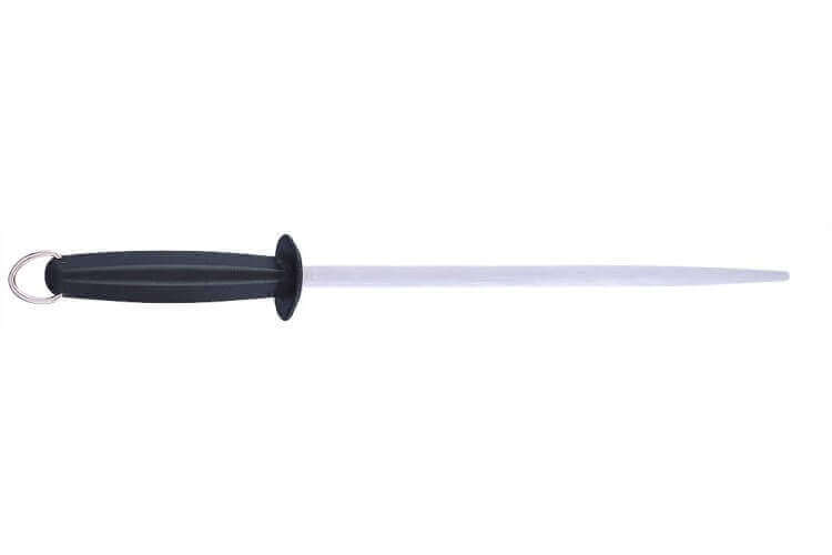 -Les fusils sont disponibles sous forme ovale ou ronde : Plus la surface est large, plus grand est le contact avec le couteau, produisant un meilleur affûtage. Nous conseillons donc l'utilisation de fusils à aiguiser à mèche ovale.