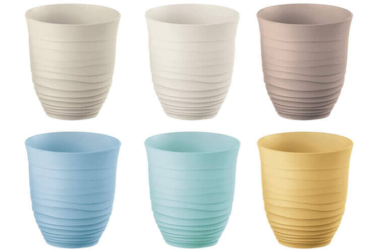 Ce lot de 6 verres est idéal et peut-être utilisé dans n'importe quelle situation : à la maison, en pique-nique, en camping, à la plage... vous êtes équipés simplement avec des objets design et écologiques ! En effet, leur surface extérieure est parsemée de stries et ils sont multicolores, voici les 6 couleurs : gris, blanc, taupe, bleu, vert et jaune.
