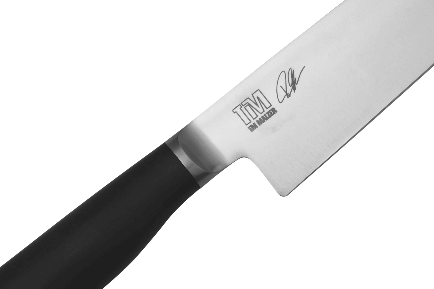 La forme unique de la lame, avec sa pointe bombée, résulte d'une observation minutieuse de Tim Mälzer sur les couteaux japonais. Cette courbe particulière, inspirée de la forme de la faucille — d'où le nom "Kamagata" signifiant "en forme de faucille" en japonais — améliore la maniabilité du couteau. La signature personnelle de Tim Mälzer, gravée directement sur la lame, rajoute une touche d'authenticité et de prestige.