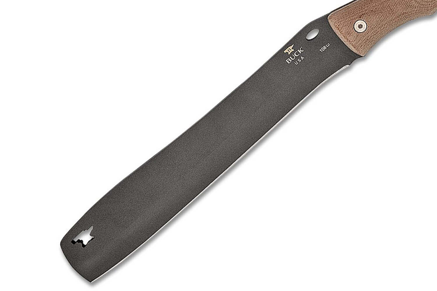 Sa lame est constituée d'acier 5160 pleine soie qui couvre toute la longueur du manche. Cela lui confère une absorption des chocs et une résistance sur laquelle vous pourrez toujours compter. Son tranchant excelle dans le hachage, mais convient également aux travaux détaillés. Buck durcit la lame à 58HRC grâce au traitement thermique Paul Bos, qui s'avère être le meilleur sur le marché. Grâce à ce procédé de renforcement, la lame tient son fil sur de longues périodes.
