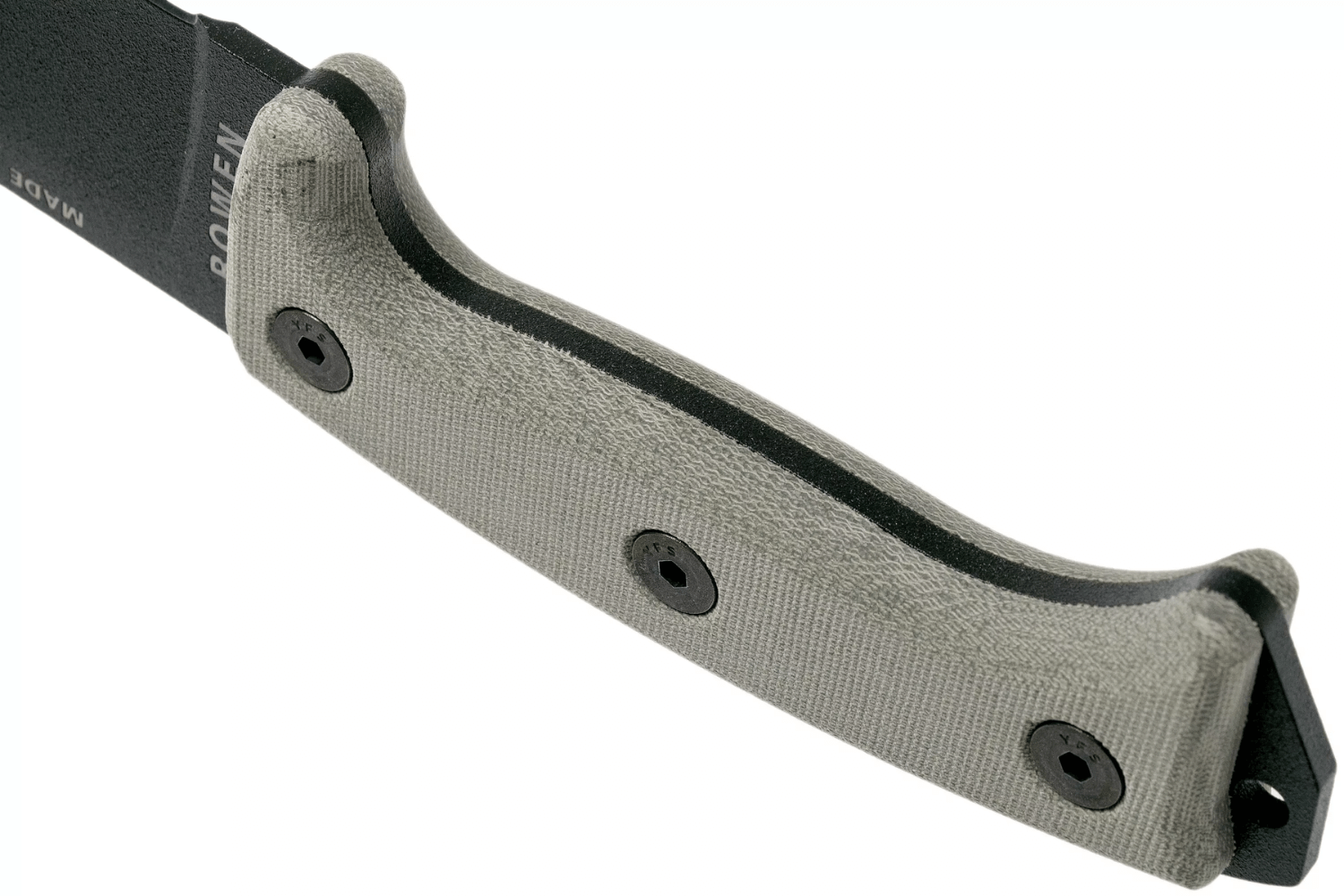La machette Junglas-E est équipée d'un manche ergonomique en micarta gris. Léger et agréable au toucher, celui-ci offre une prise en main sûre et confortable, assurant un contrôle optimal dans toutes les situations. Conçue pour réduire la fatigue lors des longues utilisations, cette poignée assure une expérience de coupe efficace et sans effort, même dans des conditions humides ou glissantes.