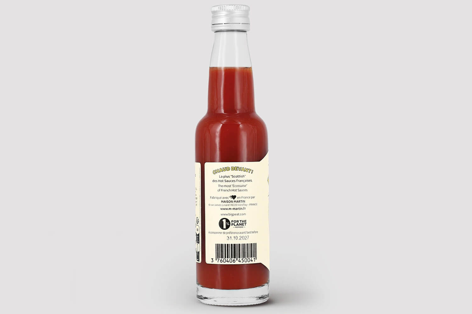 La sauce piquante Big Peat est née de la collaboration entre Maison Martin et la prestigieuse maison écossaise Douglas Laing. Cette recette combine la puissance fruitée du piment Habanero, l’équilibre du piment Picaro et les arômes tourbés du célèbre whisky Big Peat, emblématique de l’île d’Islay en Écosse. La rencontre des deux maisons donne naissance à une sauce piquante raffinée, mêlant intensité et profondeur aromatique.
