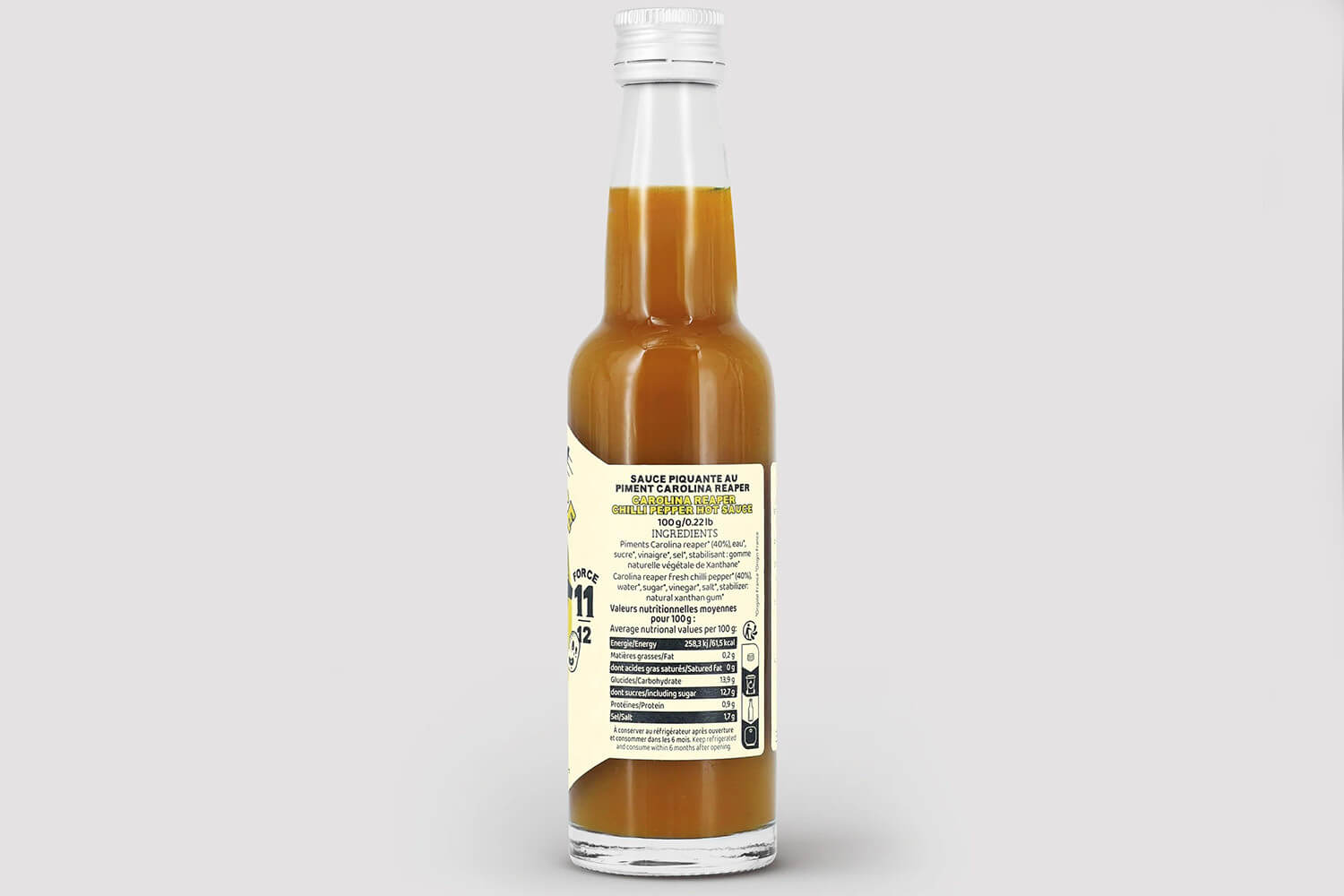 Cette sauce ayant une force de 11/12, soit environ 800 000 sur l'échelle de Scoville, elle est réservée aux palais entraînés. Elle s'utilise en de légères touches pour transformer vos recettes : en marinade pour une viande grillée, dans une soupe pour un coup de fouet, sur une pizza pour un effet volcan, ou même sur des œufs brouillés pour un réveil tonique.