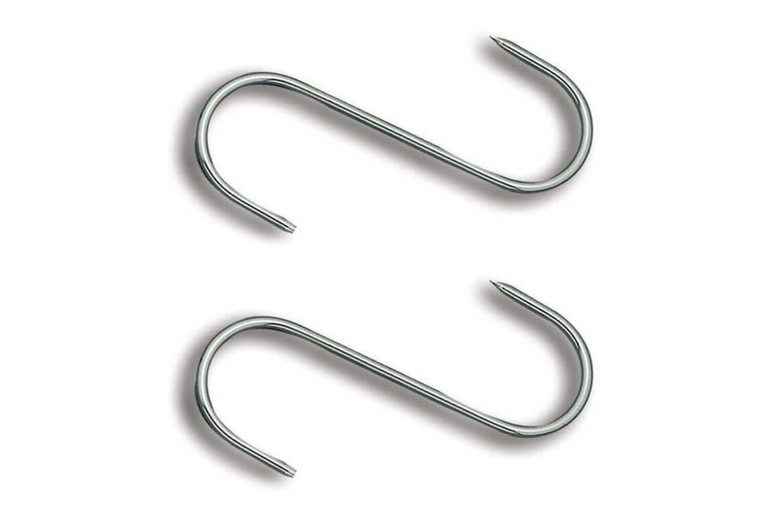 La mallette professionnelle est fournie avec deux crochets à viande en acier, mesurant 20 cm de long pour un diamètre de 9 mm, et offrant une capacité de charge maximale de 120 kg. Ces crochets simplifient l'accrochage de divers morceaux de viande, permettant ainsi de travailler directement sur ces pièces pour le désossage ou le dépeçage de l'animal. Il est important de noter que si le poids suspendu approche de la capacité maximale, les crochets risquent de se déformer. Par conséquent, il est déconseillé de travailler directement sur eux, car cela pourrait exercer une force excessive.