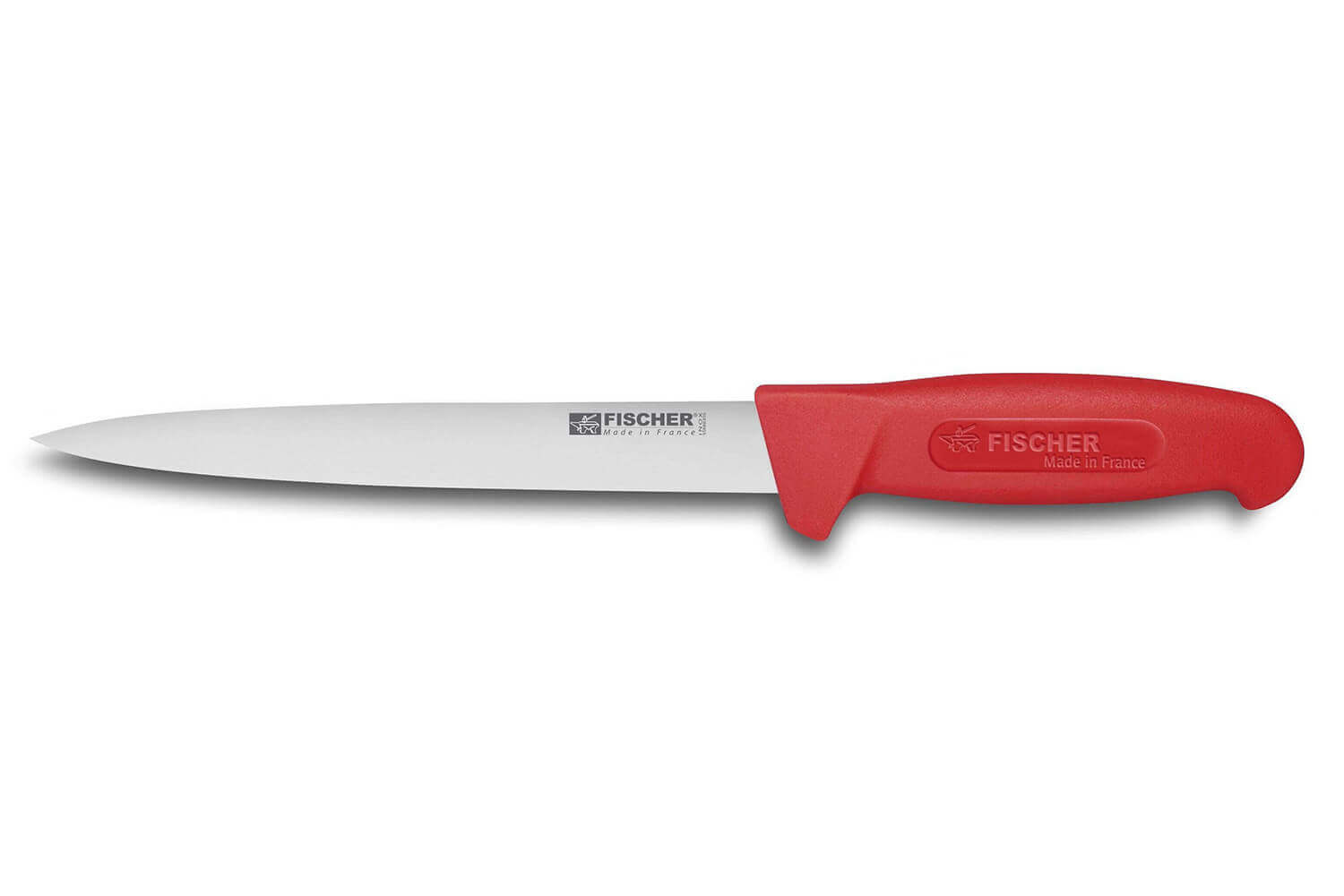 Fusil de boucher FISCHER mèche ovale 35cm grain fin manche rouge et gris