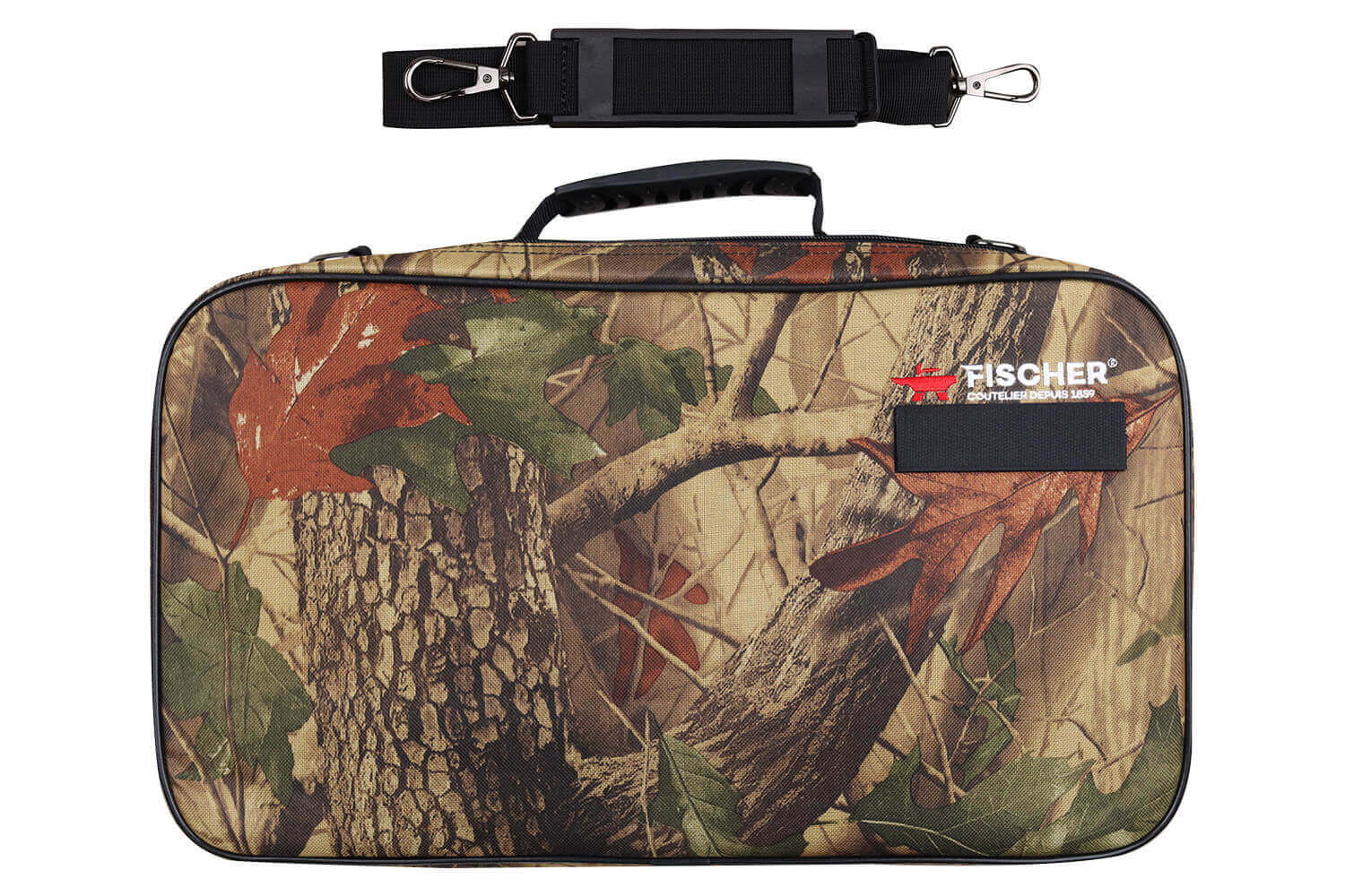 La mallette offre 16 emplacements pour ranger vos couteaux, avec des rabats pour vous assurer une sécurité maximale. Ses dimensions sont de 48cm sur 28cm, permettant d'accueillir des couteaux dont la lame mesure jusqu'à 28cm. Elle dispose d'une bandoulière réglable pour un transport sans difficulté !