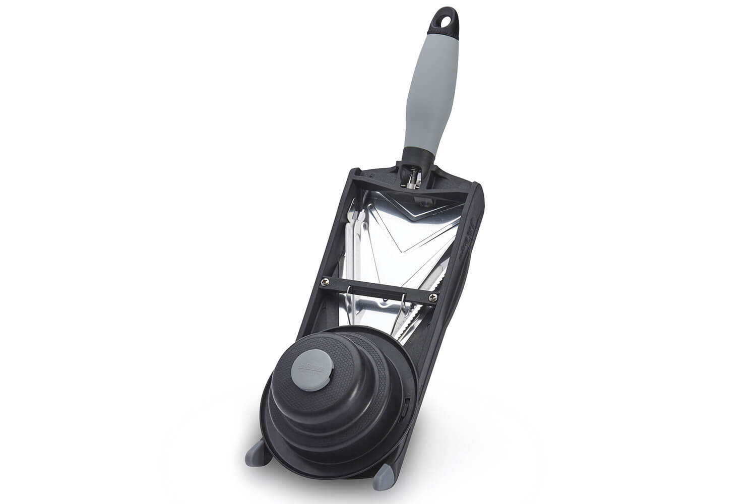 Le corps de la mandoline est réalisé en polypropylène robuste et résistant à la graisse et à l'eau. En étant associé à une poignée anti-glisse, vous pouvez utiliser la mandoline de manière fiable sans risque qu'elle ne vous échappe des mains.