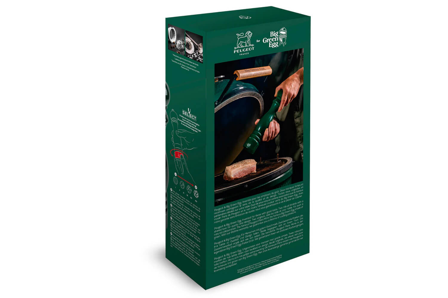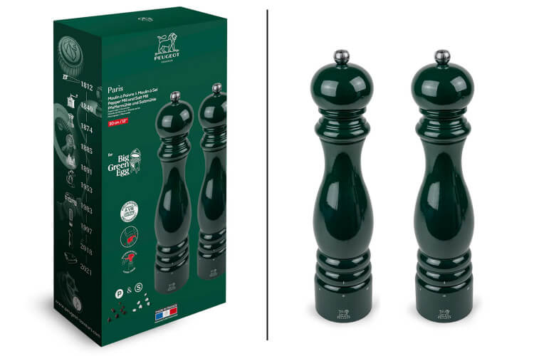 La collaboration inédite entre Peugeot et Big Green Egg permet de mettre en lumière ce beau coffret de moulins à poivre et sel aux couleurs de votre barbecue préféré !