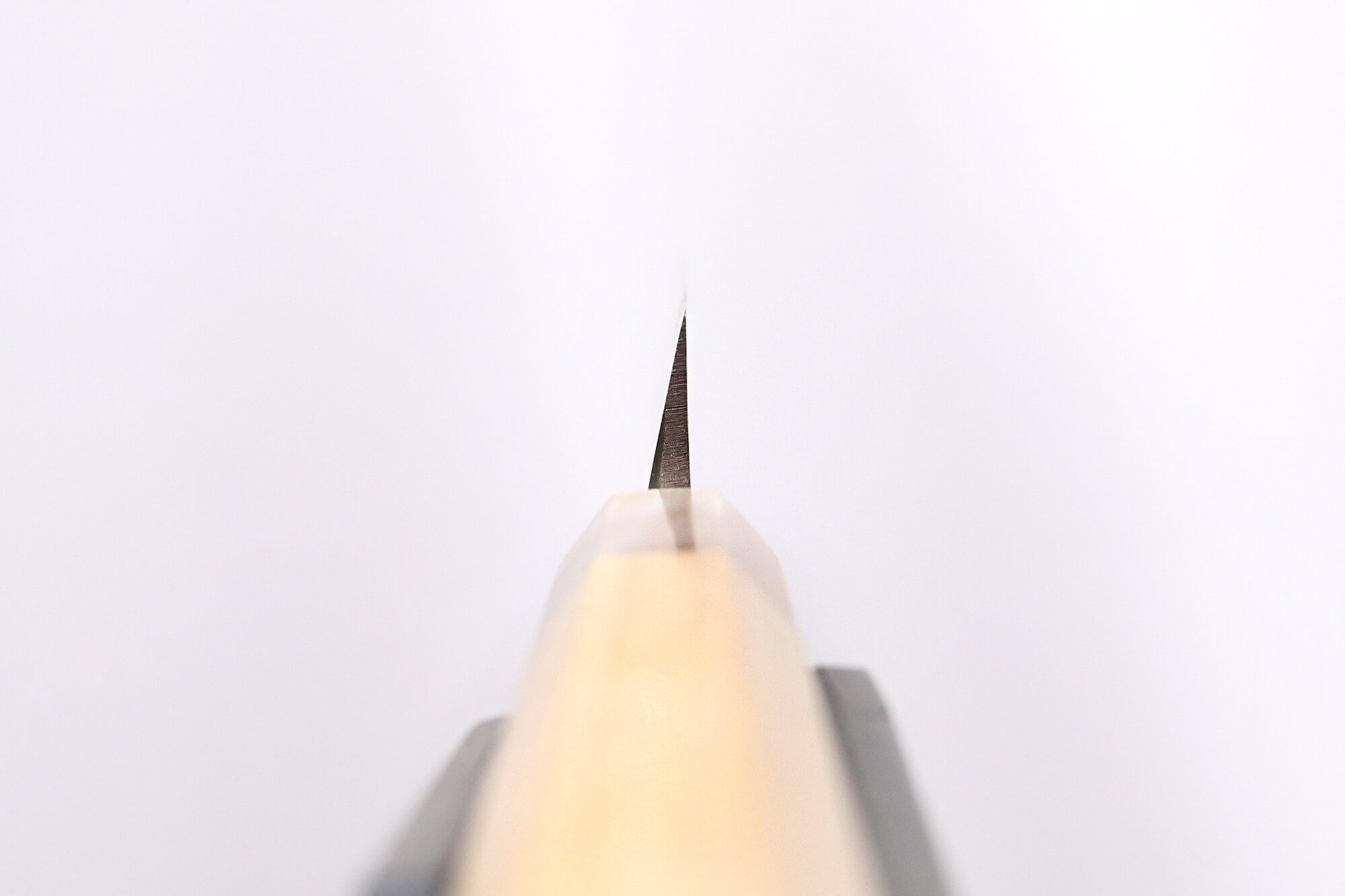 L’affûtage de ce couteau a ensuite été confié aux spécialistes de Fujii Hamono. Sous la supervision de Fujii Keiichi, l’entreprise utilise de grandes meules pour perfectionner le tranchant des lames. Grâce à un savoir-faire minutieux et des années d’expérience, ces artisans assurent à votre couteau une coupe d’une précision exceptionnelle.