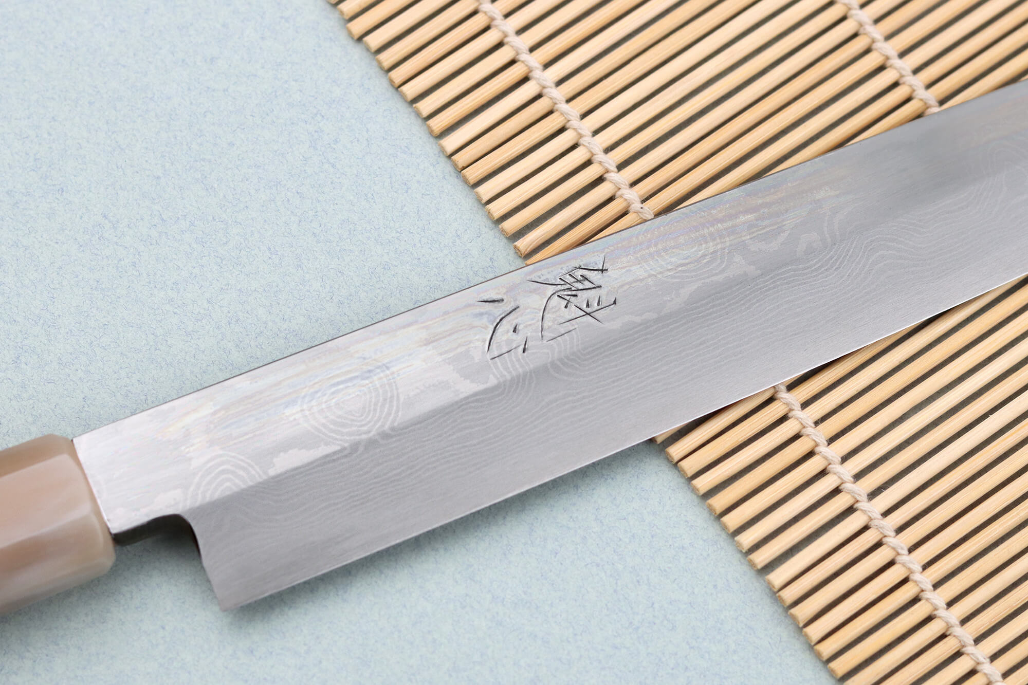 Couteau yanagiba 30cm japonais artisanal Nakamura Kaishin Suminagashi WS1