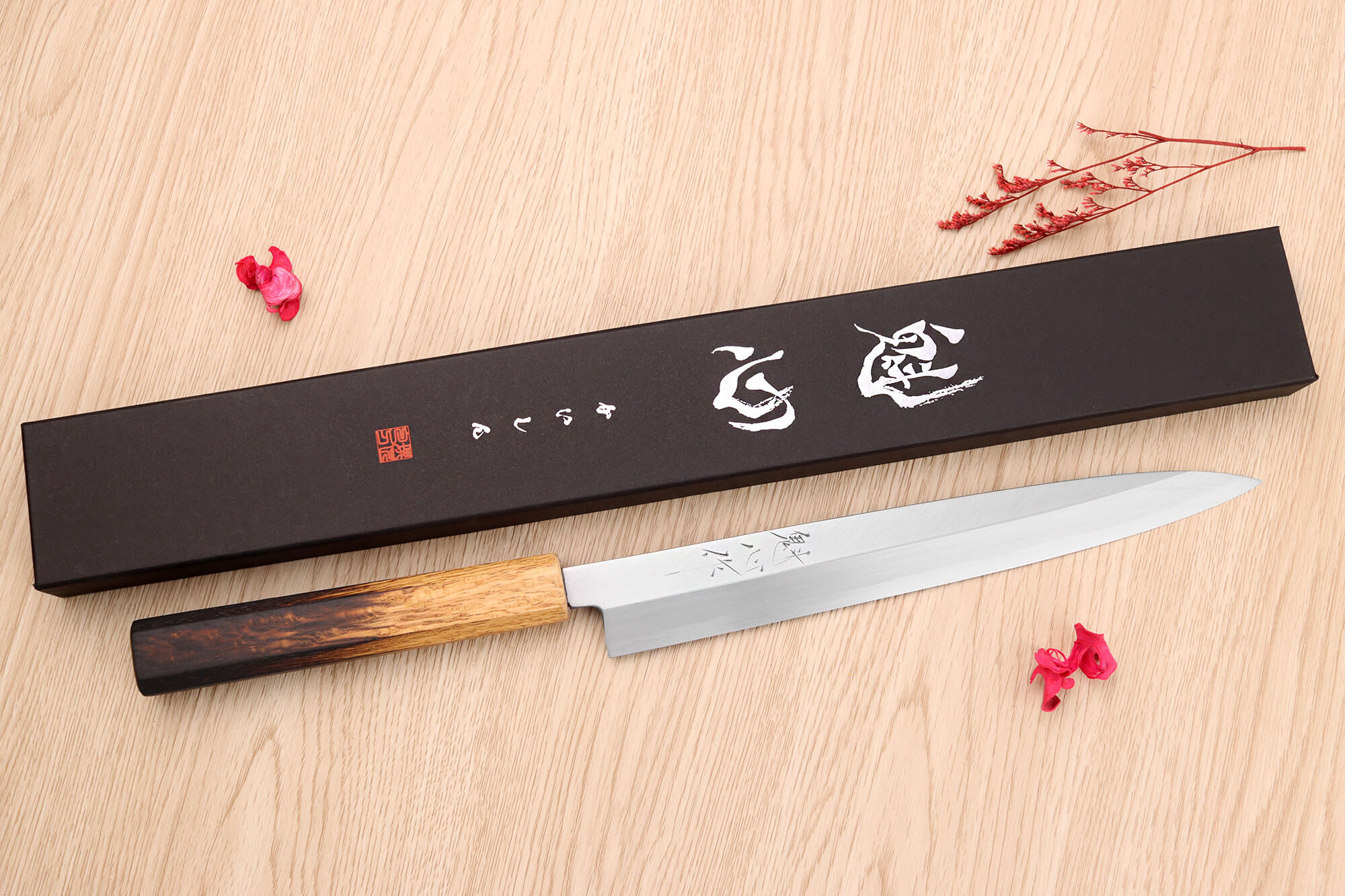 Couteau yanagiba 27cm japonais artisanal Nakamura Kaishin Ginsan Damas