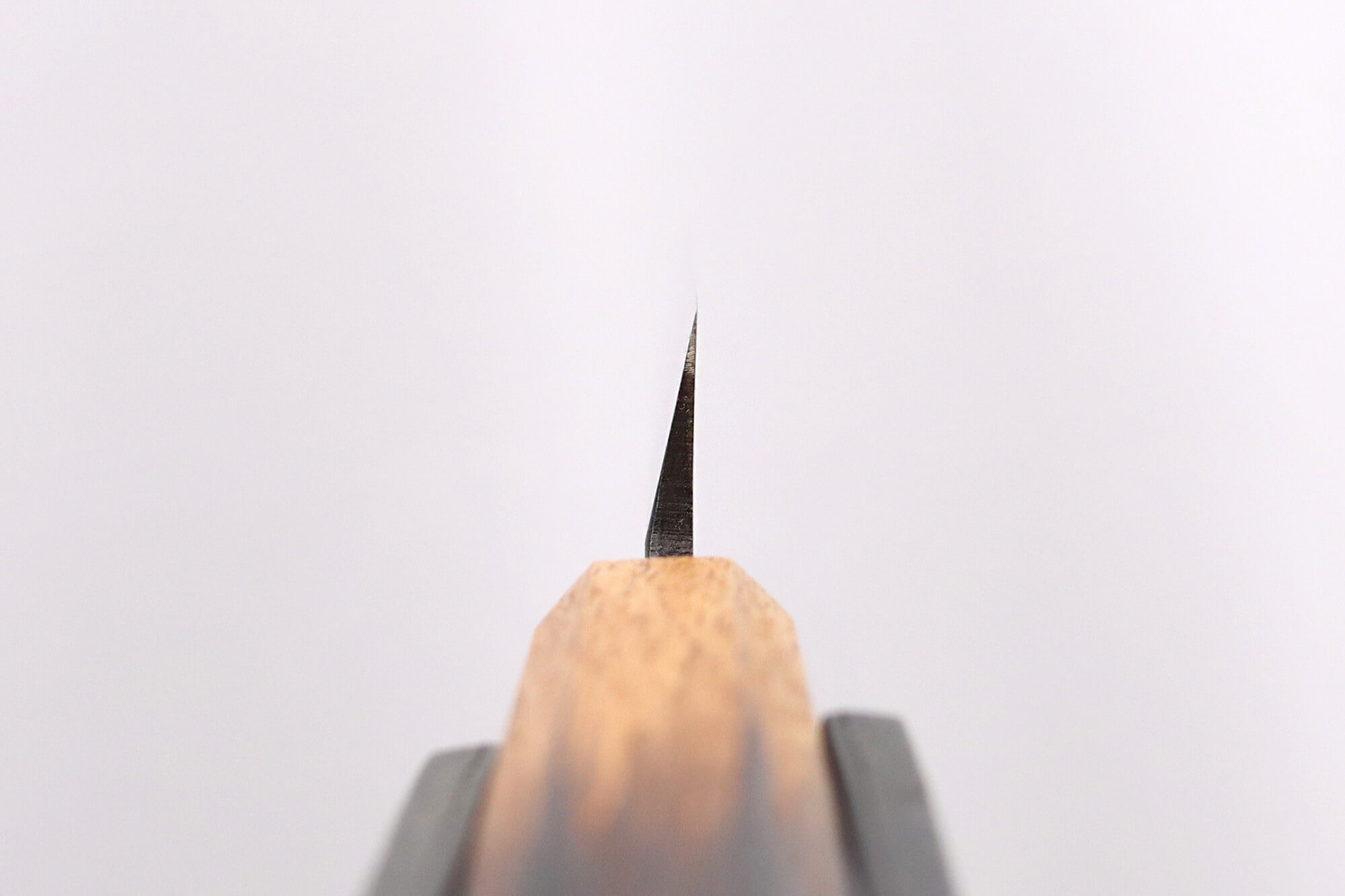 Votre yanagiba est forgé par une équipe de forgeron expert, puis, il est aiguisé par Tomoyuki Ajioka, maître affûteur traditionnel réputé de Sakai. Avec plus de cinquante ans d’expérience, il a transmis son savoir-faire à de nombreux apprentis afin de préserver la tradition de la coutellerie japonaise. Lors de chaque affûtage, il se met à la place de l’utilisateur, veillant à offrir un tranchant d’une précision exceptionnelle pour une coupe nette et sans effort !