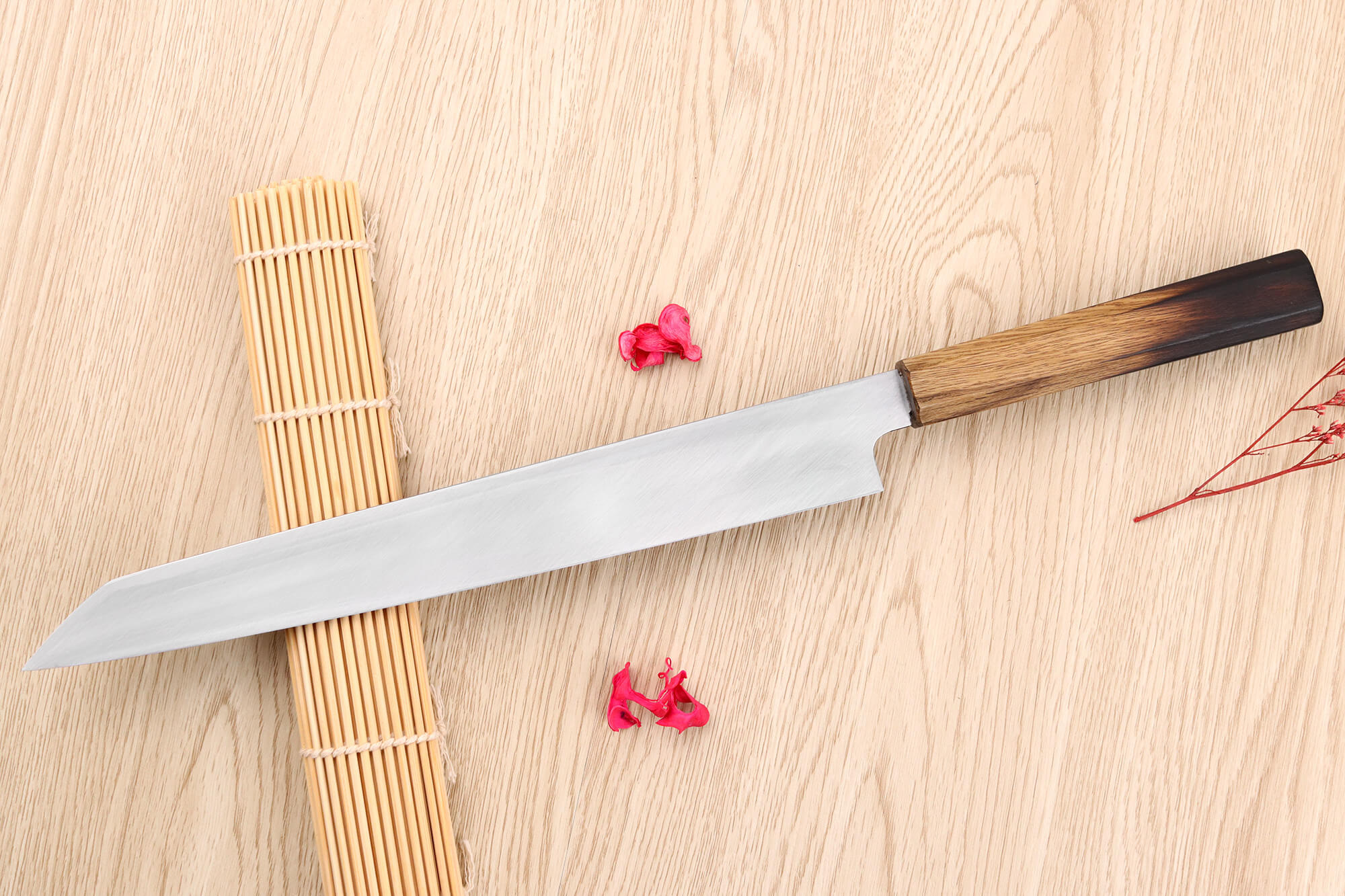 Couteau yanagiba 24cm japonais artisanal Nakamura Kaishin Saku WS2 en magnolia