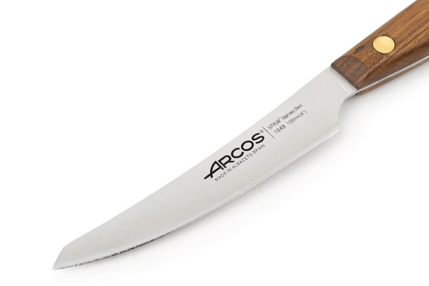 Sa lame lisse est conçue en acier inoxydable NITRUM®. Il s'agit d'un alliage métallique développé exclusivement par Arcos. Cet acier est enrichi à l'azote afin d'améliorer sa structure moléculaire ainsi que sa dureté. Avec une dureté de 57HRC, cet acier offre une performance de coupe et une durabilité remarquable, surpassant de 40% les aciers européens classiques.