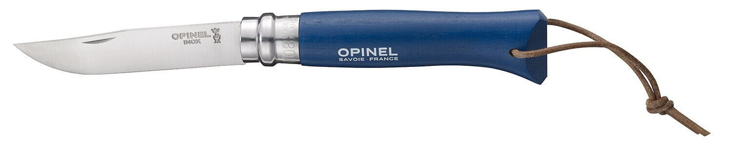 De plus, le petit cordon en cuir disponible au bout du manche vous permet de transporter ou d'accrocher aisément et efficacement l'Opinel à tout support (porte-clefs, ceinture...).