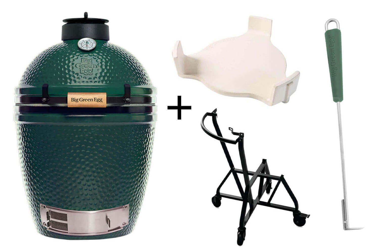 Choisissez le pack Medium : barbecue Big Green Egg avec son chariot à roulettes, son racloir et son convEGGtor !