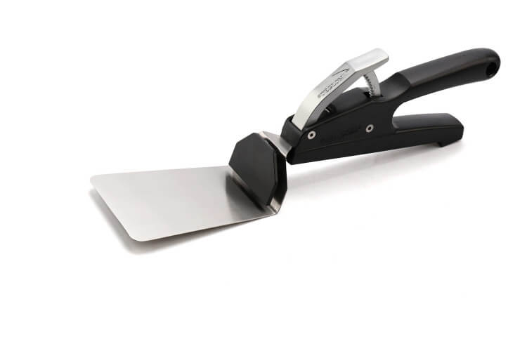 La lame de la pelle, de forme rectangulaire, a été affinée vers son extrémité. Cela facilite la prise de l’aliment en se glissant plus facilement sous la part.