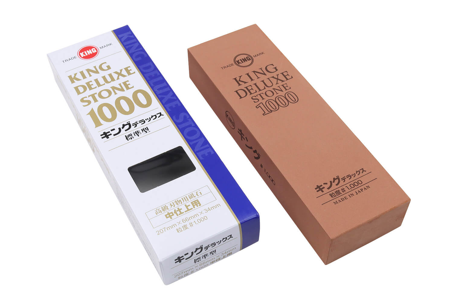 La pierre à aiguiser japonaise King Deluxe grains 1000 est la pierre à aiguiser par excellence. Son grain lui permet d'être utile pour presque tous les types d'acier, qu'ils soient durs ou mous.