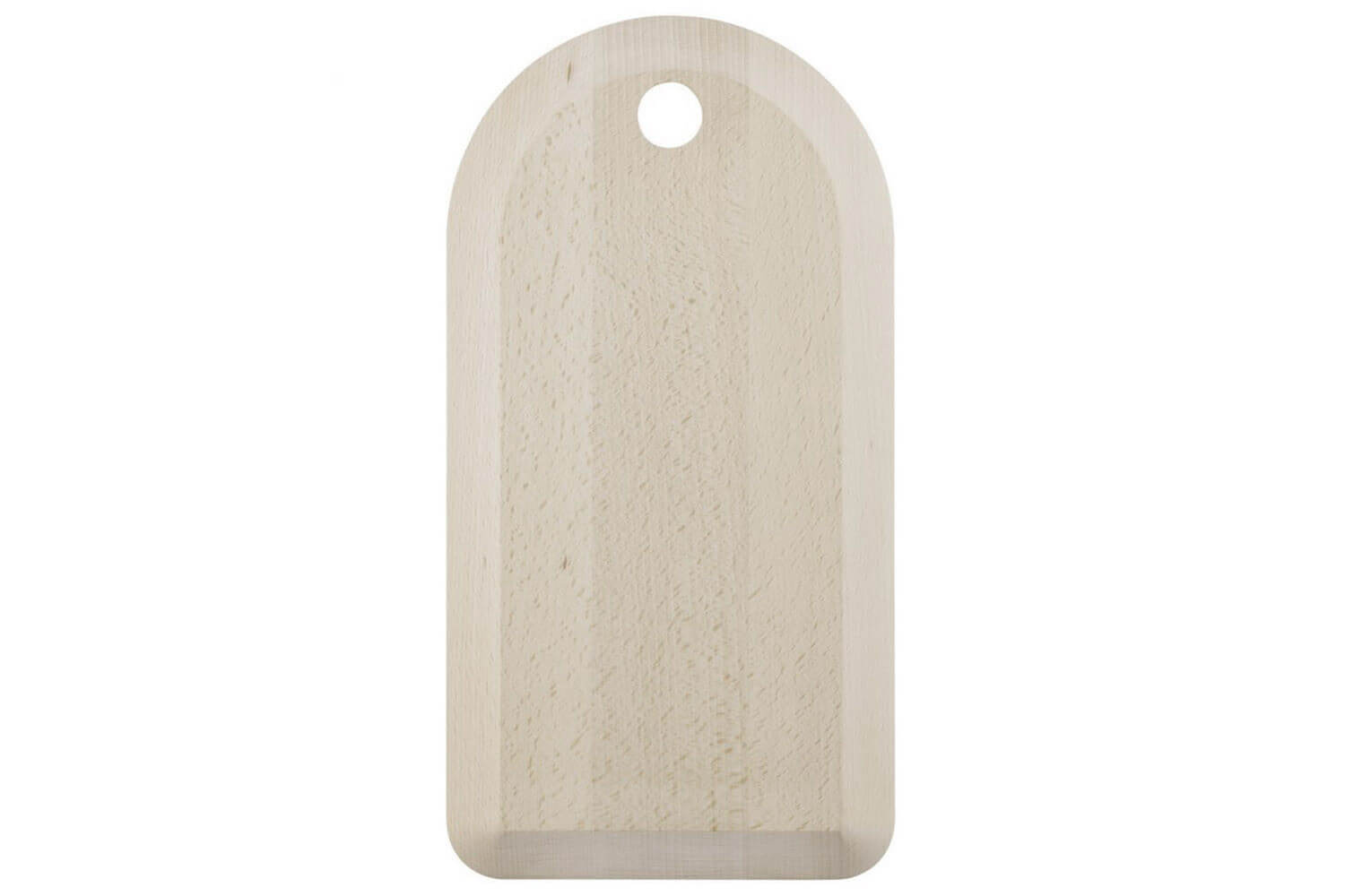 La planche est en bois de hêtre huilé et clair, ce qui lui donne une apparence intemporelle. Le bois est plus hygiénique, car contrairement à une matière synthétique, il permet d'éviter que les entailles faites sur la planche ne se referment et gardent des résidus alimentaires.