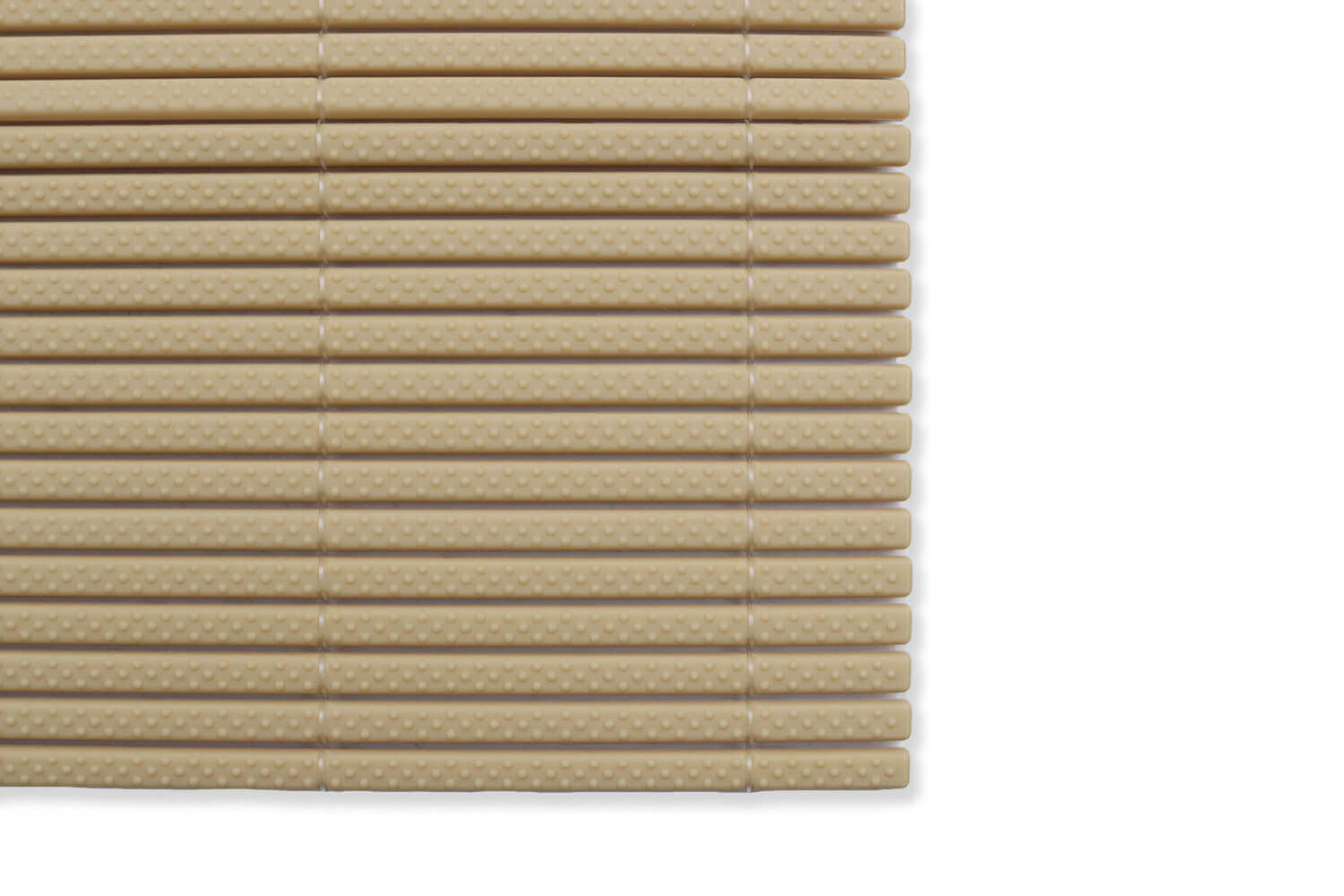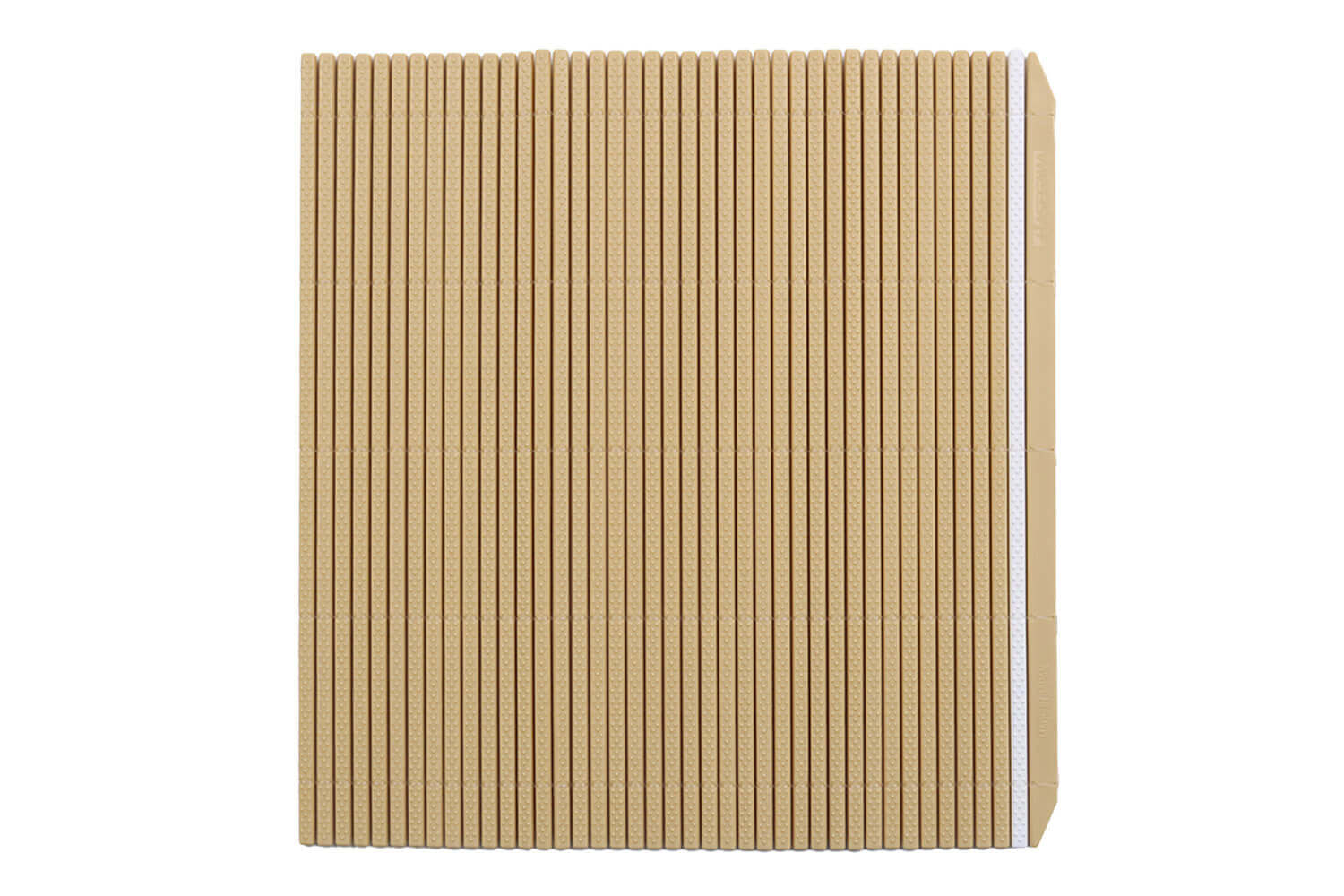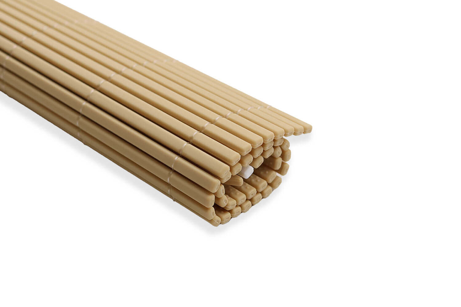 Ce tapis, aussi nommé Makisu en japonais, est conçu avec des matières innovantes ! Traditionnellement, le makisu est fabriqué en bambou avec des fils en coton et nécessite donc l'ajout d'un film alimentaire pour être hygiénique. Pour concevoir son rouleau, Hasegawa a choisi d'utiliser des matières synthétiques telles que le polypropylène afin d'éviter l'utilisation d'un film alimentaire en supplément.