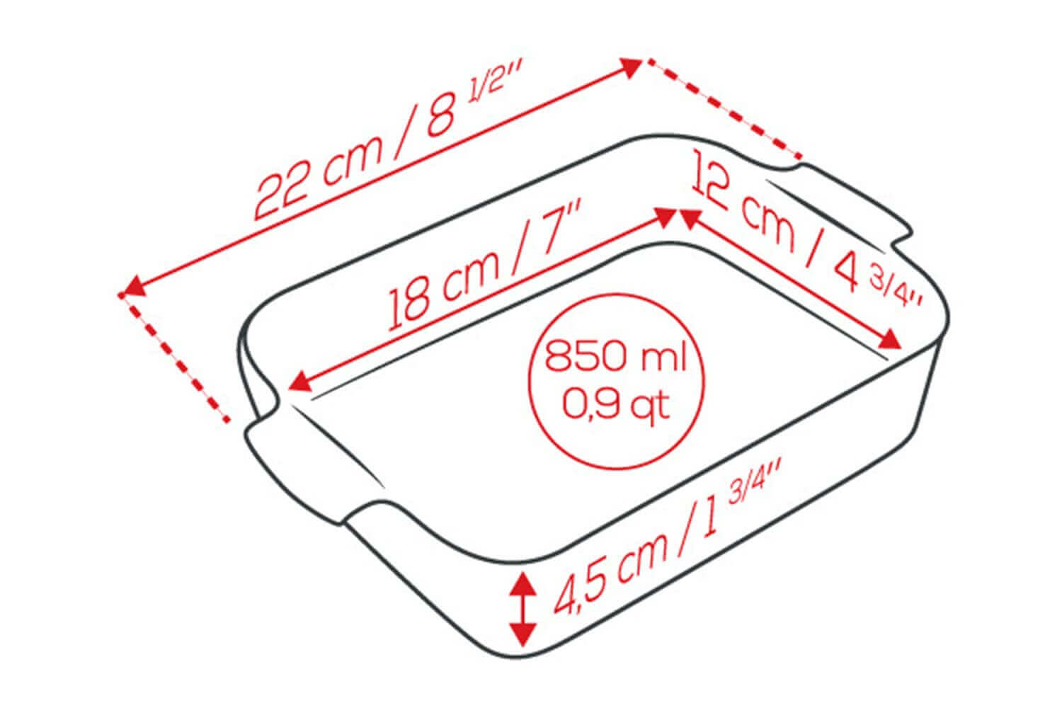 Dimensions : 22 x 12 x 4,5 cm - Contenance : 850ml