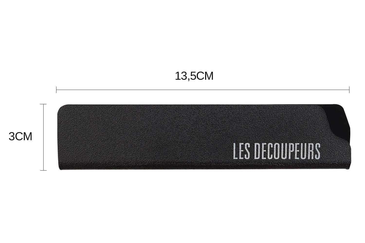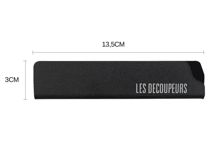 Vous pouvez y placer une lame de 13,5cm de long et de 3cm de hauteur telle qu'un couteau d'office, un couteau bec d'oiseau, ...