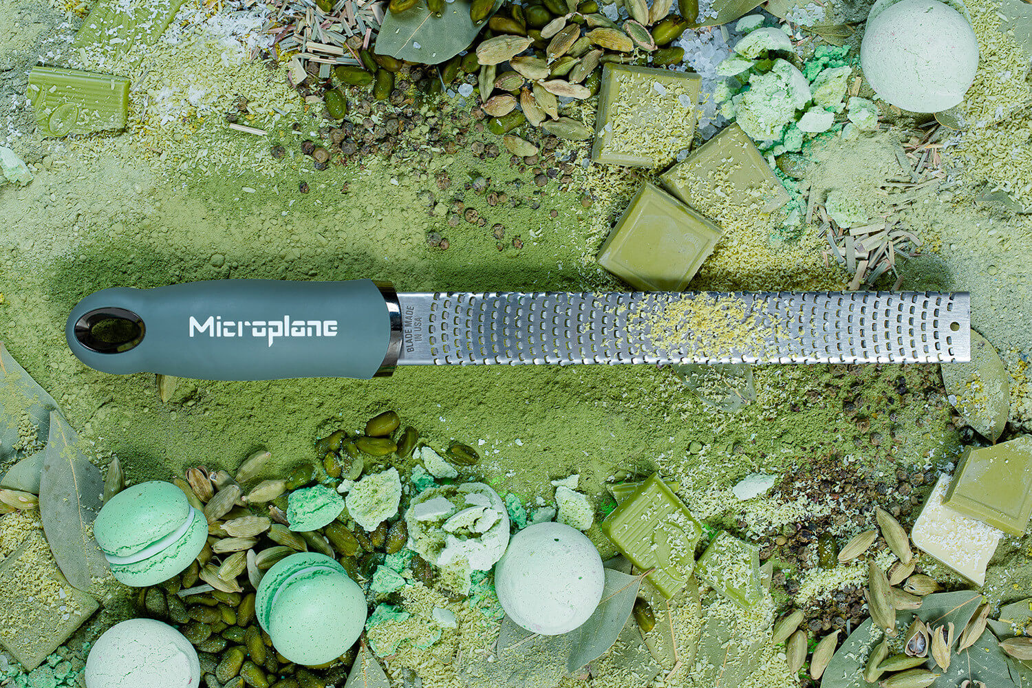 Râpez finement et en toute efficacité vos aliments grâce à la râpe Microplane Vert Eucalyptus !