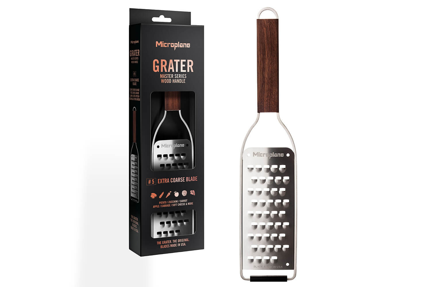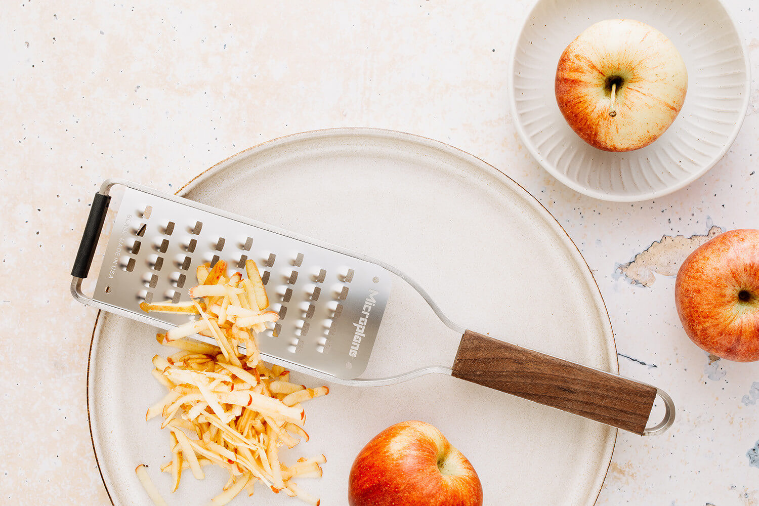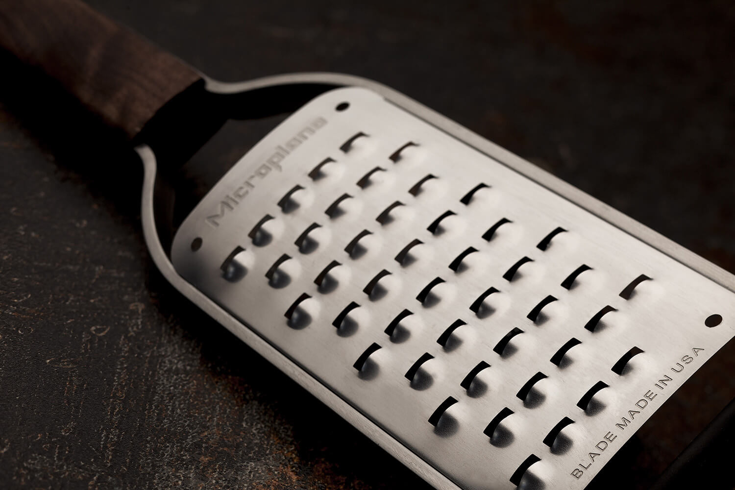 La collection Microplane Master allie à la fois la célèbre efficacité de la marque à un design traditionnel très visuel. L'alliance de l'acier et du bois se fait à merveille ! Elle a été conçue en hommage au tout premier métier de Microplane, à savoir le travail du bois, dans l'univers du bricolage. Vous avez ici non pas une râpe à bois, mais bien une râpe de cuisine tout aussi performante. Voyons plus en détails ce qui fait que la râpe Microplane est un élément de choix pour tous les cuisiniers, professionnels ou non...