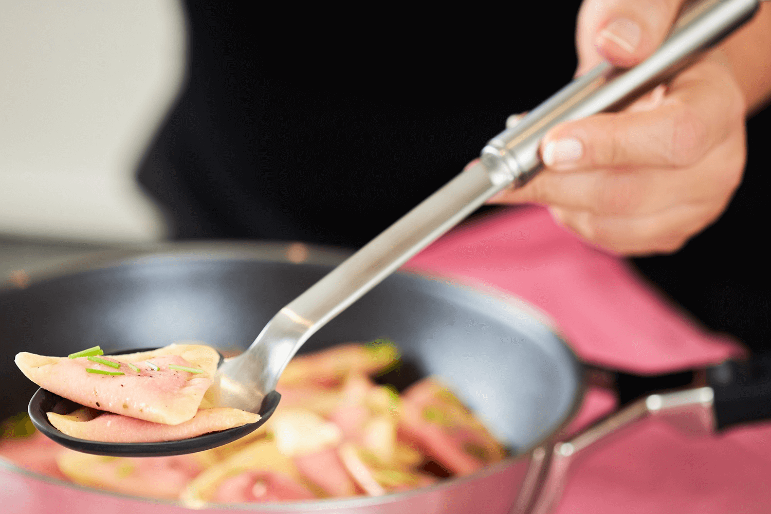 Vous avez des poêles et des casseroles antiadhésives dans votre cuisine ? Ne vous inquiétez pas, car cette cuillère est parfaitement adaptée à ces ustensiles de cuisson. Grâce à son bord en silicone résistant à la chaleur jusqu'à 260°C, vous pouvez remuer, retourner et servir vos plats en toute sécurité sans endommager le revêtement antiadhésif de vos récipients.